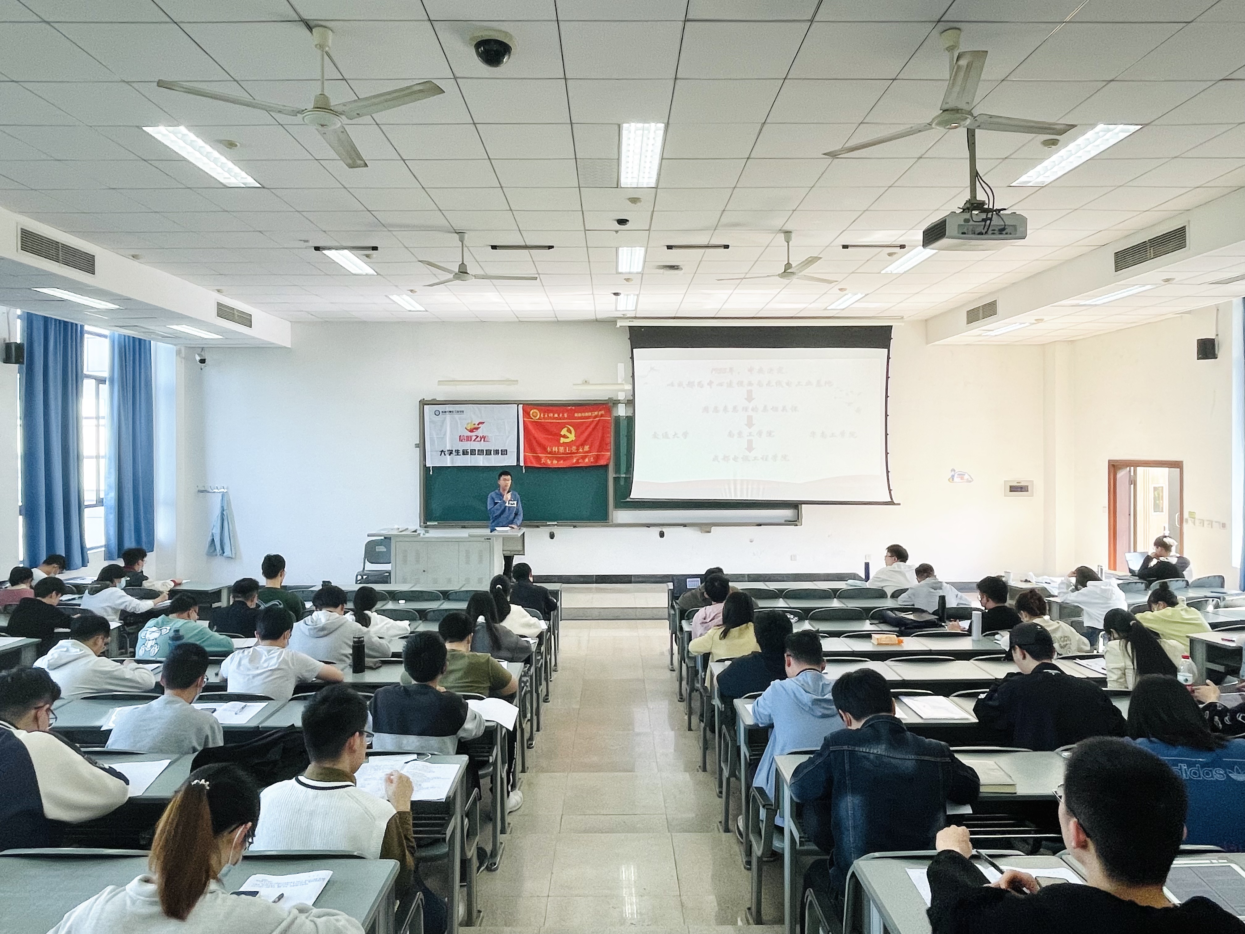 4月20日,太阳成集团tyc151cc“5月的向日葵”辅导员工作室下属“信仰之光”老员工新思想宣讲团的20位成员走进信通分党校,面向420余名发展对象及入党积极分子开展微党课宣讲。本次活动在5个教室同时进行,每个教室分别有1名宣讲团指导老师和4名宣讲员。首先,宣讲团指导老师向党校培训班学员们介绍了宣讲团的成立背景、发展历程和宣讲员基本情况,并为新一批宣讲团成员颁发聘书。随后,宣讲团20名成员,从成电建校史、公司发展史、中...