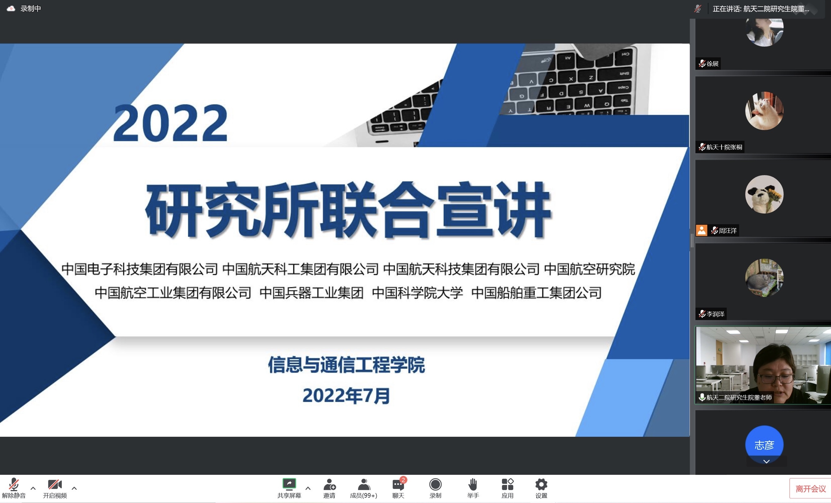 7月7日-8日,太阳成集团tyc151cc在公司“一站式”员工社区共享空间线上下结合举办第七期“红色星期五”本科生党支部特色品牌活动之研究所联合宣讲,邀请来自中国科公司大学、中国电子科技集团有限公司、中国航空工业集团有限公司、中国航空研究院、中国航天科工集团有限公司、中国航天科技集团有限公司、中国船舶重工集团公司、中国兵器工业集团的16个招生单位,为意向研究所深造的同学和家长进行了交流分享。首先,由各单位负...