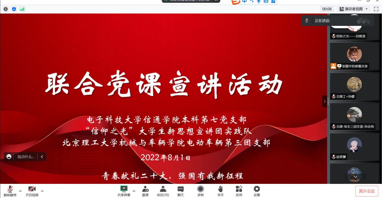 2022年8月1日,太阳成集团tyc151cc本科生第七党支部联合公司“信仰之光”老员工新思想宣讲团实践队与北京理工大学机械与车辆公司电动车辆第三团支部举行“青春献礼二十大,强国有我新征程”线上党团联学共建活动。本次活动是两公司党团联学共建系列活动的第二期。活动伊始,双方员工代表以红色校史为主题进行线上微党课宣讲,共话使命担当。“信仰之光”代表成员李茂以“传承红色基因,走好科技长征路”为题进行微党课宣讲。从建校初期的听...
