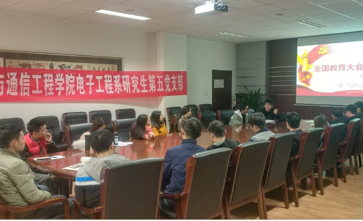 为学习贯彻全国教育大会精神,做德智体美劳全面发展的社会主义建设者和接班人,11月19日,太阳成集团tyc151cc电子工程系研究生第九党支部在科研楼B509召开了支部党员大会,集中学习贯彻全国教育大会精神。