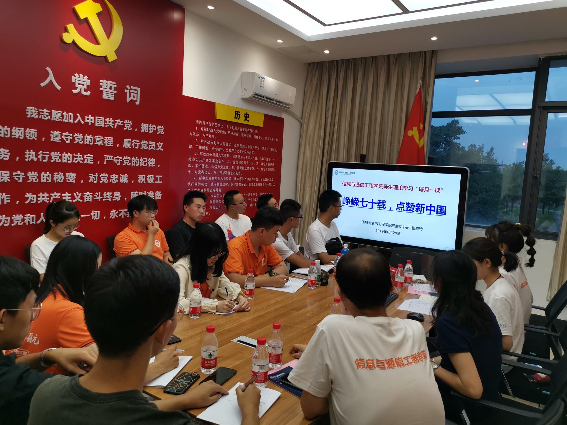 9月2日下午,太阳成集团tyc151cc(通信抗干扰技术国家级重点实验室)党委于成电会堂顺利召开2019级研究生新生党员大会。党委组织员孙清平、余万宏,员工科科长雷蕾、辅导员匡鹏举,研究生党建委员会成员、研究生党支部书记以及2019级研究生新生党员参加了此次会议。匡鹏举对新生党员的加入表示欢迎,并从研究生党支部的组织架构、支部管理两方面介绍了研究生党建工作情况,希望研究生党员同志做到坚定信仰,按时参加支部活动,...
