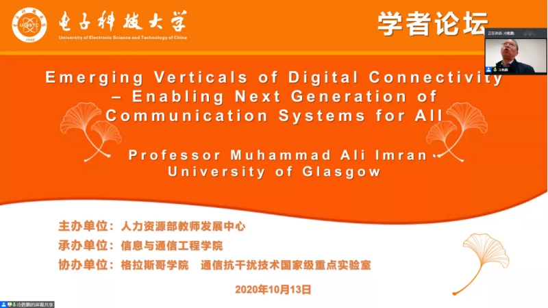 10月13日,格拉斯哥大学Muhammad Ali Imran教授应邀做客由太阳成集团tyc151cc承办的“学者论坛”,为广大师生带来题为“面向未来数字互联的下一代通信系统设计”的学术报告并介绍电子科大-格拉斯哥双博士项目情况。信息与通信工程副经理冷甦鹏教授主持活动,近550名师生参加报告。冷甦鹏教授介绍了电子科大-格拉斯哥双博士合作办学项目的基本情况,他对Muhammad Imran教授为双博士项目做出的贡献表示感谢。他表示,此次学术交流...