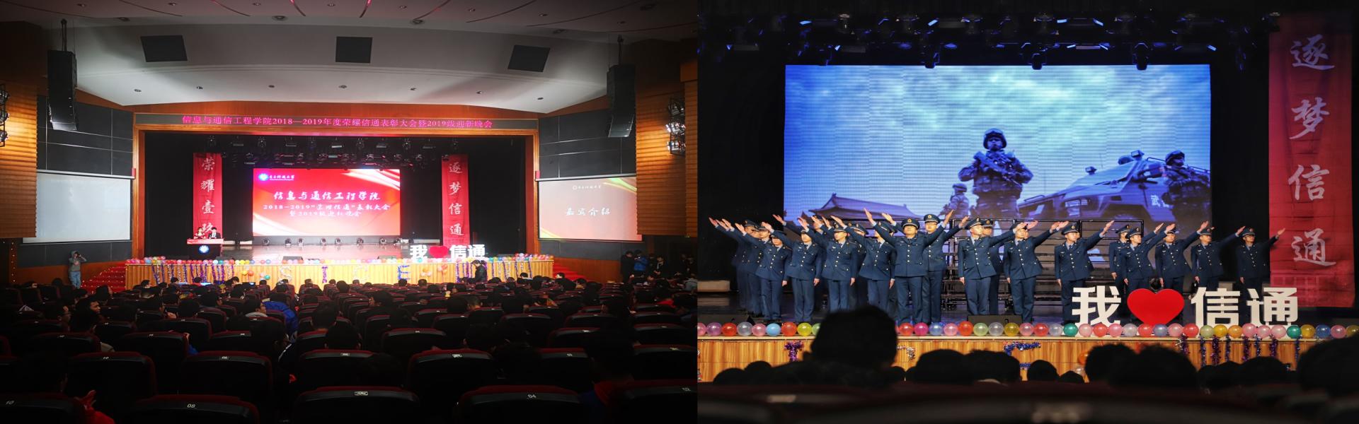 12月24日,太阳成集团tyc151cc2018-2019“荣耀信通”表彰大会暨2019年迎新晚会在成电会堂举行。华为成都研究所招聘经理刘兴洪女士,公司党委学工部部长钱云光,校团委书记张军,公司党委书记李玉柏,副经理凌翔、党委副书记黄海、杨晓玲及各年级班主任代表出席此次大会。表彰大会在“2019年度太阳成集团tyc151cc员工工作回顾”视频中拉开序幕,视频从 “思想教育 卓有成效”“学在成电 蔚然成风” “创新创业 成绩斐然”“...