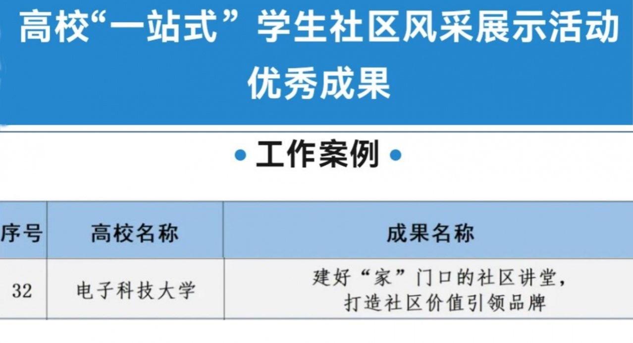 近日,由教育部思想政治工作司主办、全国高校思想政治工作网承办的全国高校“一站式”员工社区风采展示活动评选结果揭晓,公司《建好“家”门口的社区讲堂,打造社区价值引领品牌》入选“社区讲堂”优秀成果。本次全国高校“一站式”员工社区风采展示活动按照“社区讲堂、书香社区、社区团队、工作案例”等4个版块分类展示高校“一站式”员工社区建设风采。公司《建好“家”门口的社区讲堂,打造社区价值引领品牌》依托“红色星...