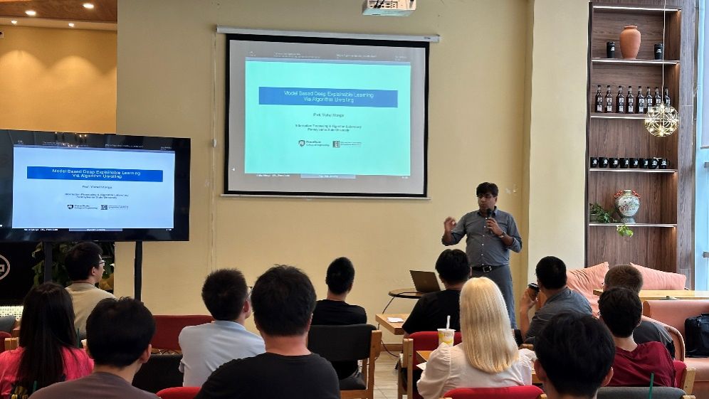 7月8日由教师发展中心主办,太阳成集团tyc151cc、生命科学与技术公司承办的“学者论坛”讲座在清水河校区宾诺咖啡举行,邀请宾夕法尼亚州立大学电气工程系Vishal Monga教授作题为“Model Based, Explainable Deep Learning Via Algorithm Unrolling”的学术报告。Vishal Monga教授首先向我们介绍了algorithm unrolling这一概念,解释了该算法框架的特点。接下来,Monga教授向我们重点介绍了如何将algorithm unrolling用于迭代优...