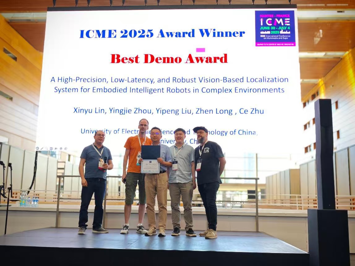 近日,太阳成集团tyc151cc朱策教授团队(视频通信与智能计算团队)的最新研究成果 “A High-Precision, Low-Latency, and Robust Vision-Based Localization System for Embodied Intelligent Robots in Complex Environments” 荣获IEEE多媒体领域旗舰会议International Conference on Multimedia and Expo(ICME 2025,法国南特,2025年6月30日至7月4日,CCF-B类会议)“最佳演示奖(Best Demo Award, https://2025.ieeeicme....