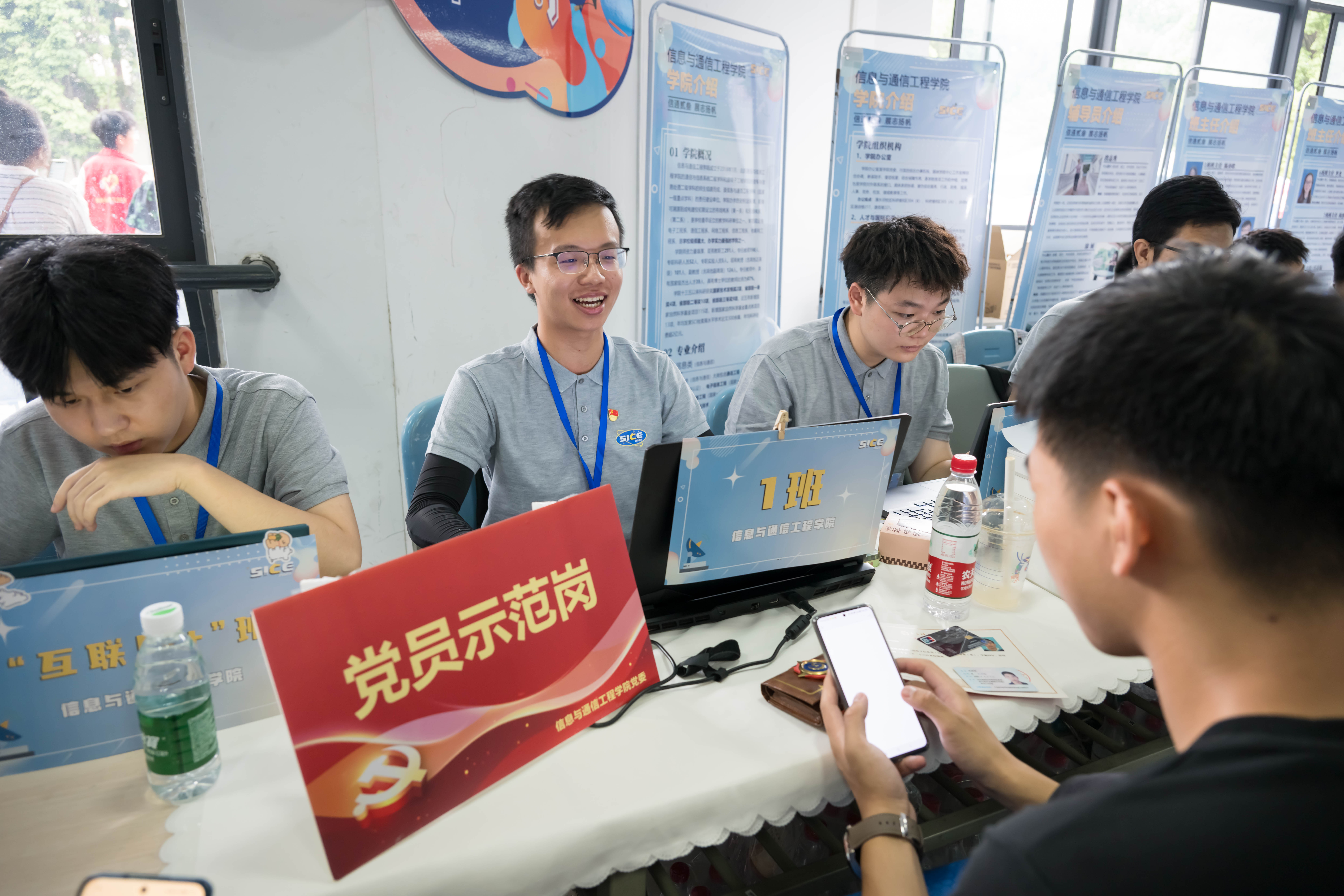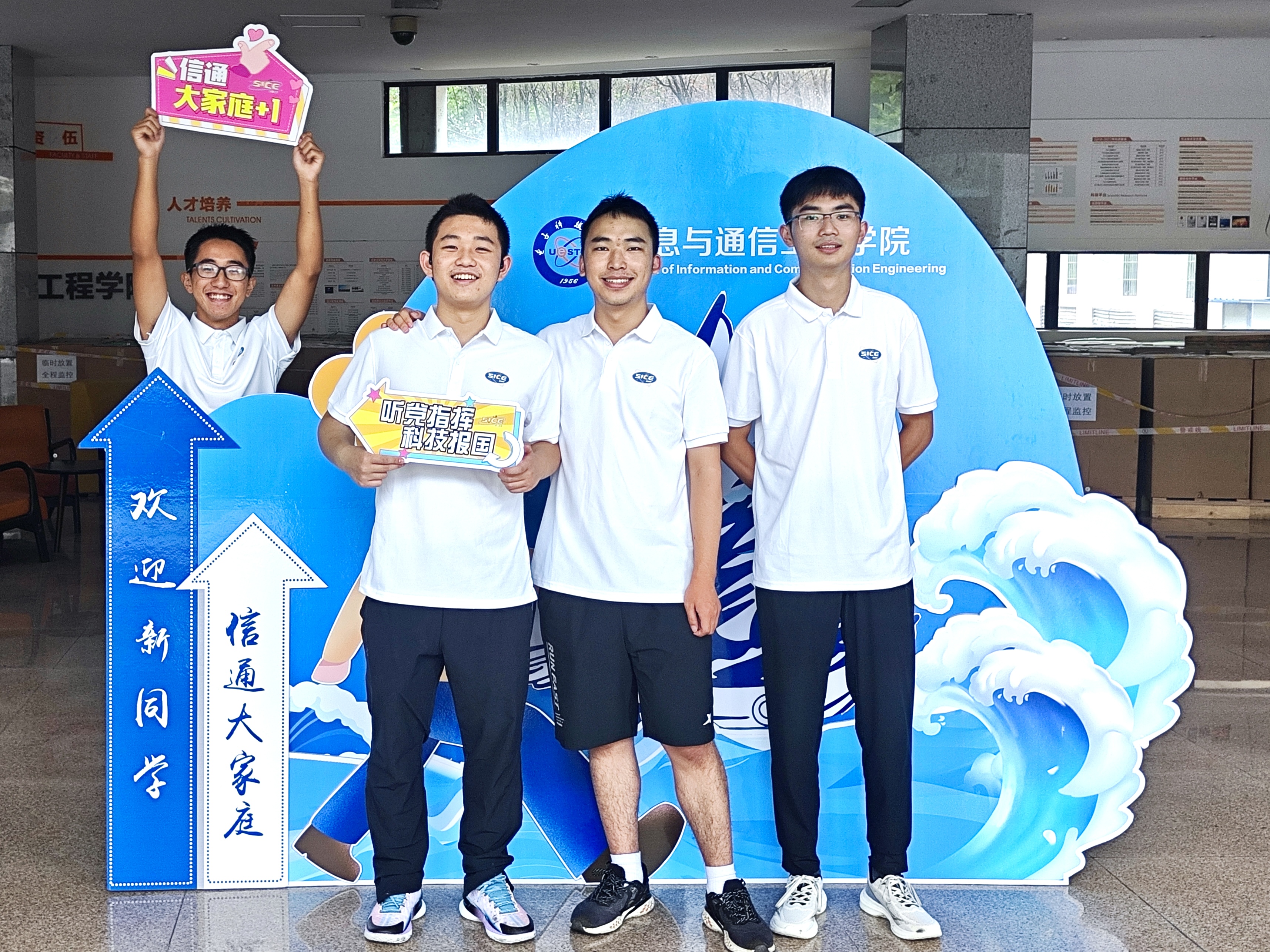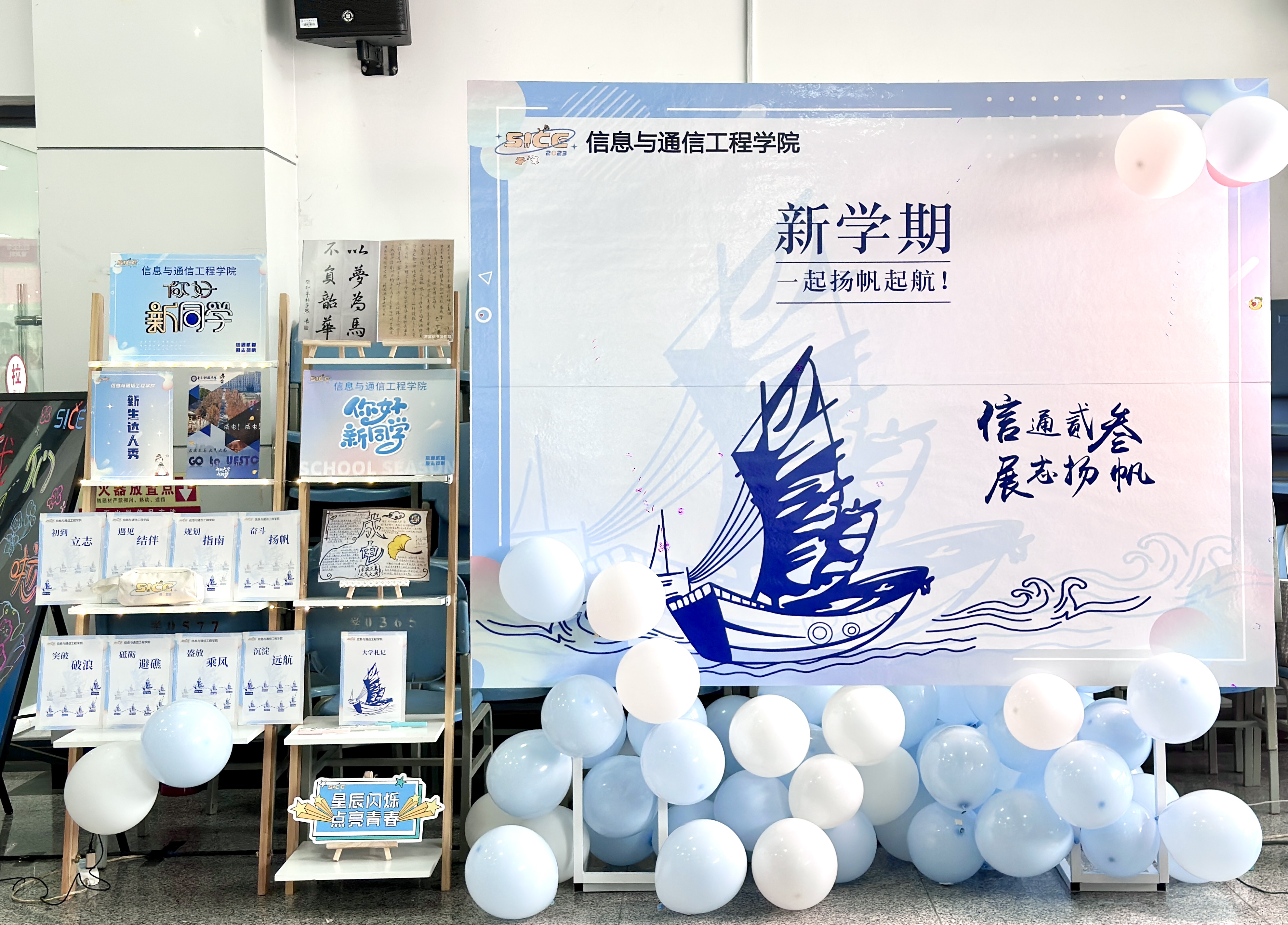 在报到入口,“展志扬帆”愿景板引人注目,新生们郑重立下“不会倒的Flag”,共同点燃追求卓越的决心。报到现场和公司大厅还设有3组合影打卡区,融入了学科特色和年级文化的拍照打卡组合饱含对新一届信通学子“笃行勇立鸿鹄志,奋楫扬帆启新程”的美好祝愿。