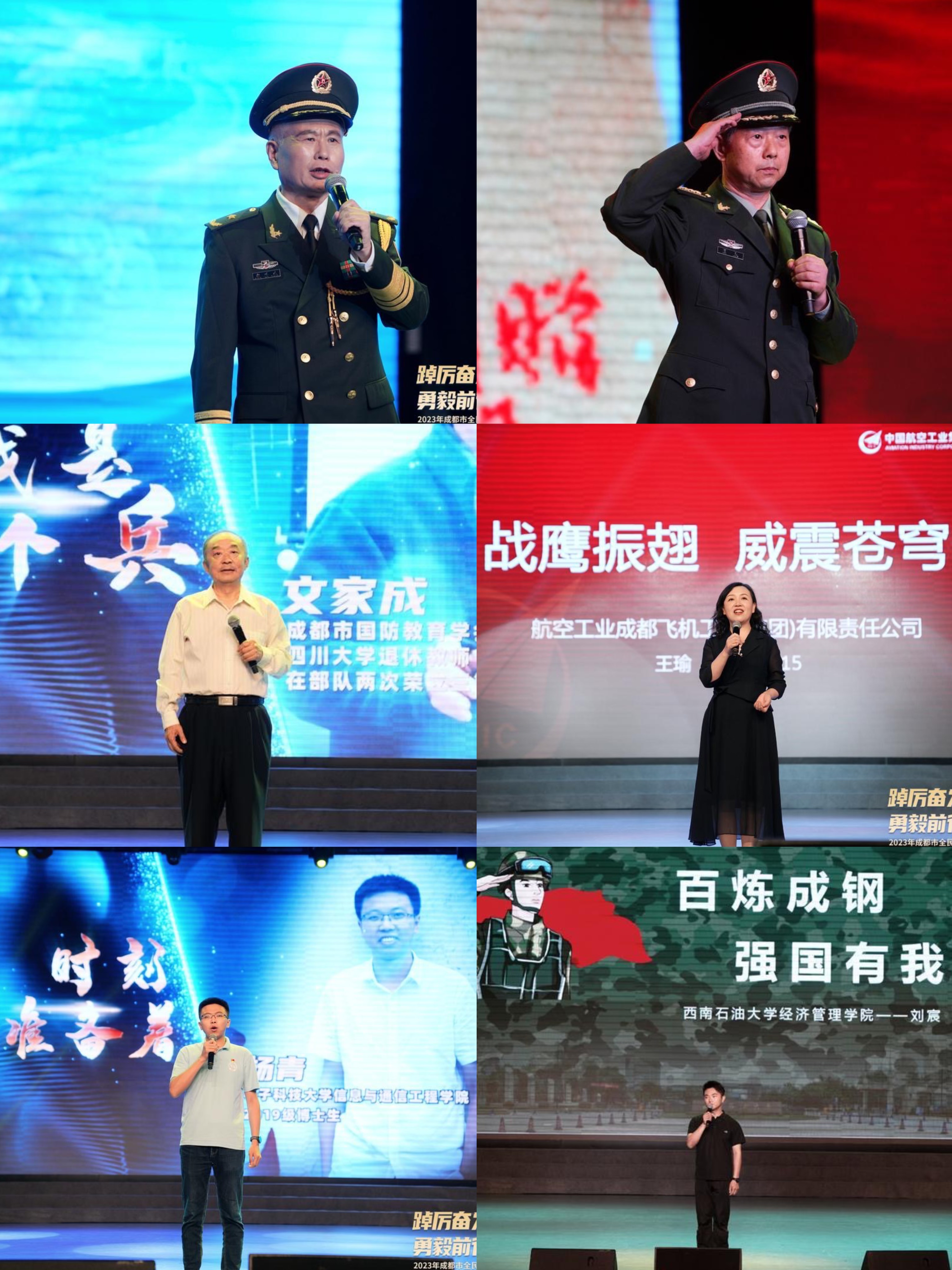 本次主题宣讲活动亮点纷呈,活动现场邀请到老、中、青三代国防典型人物现身说法、生动开讲。原成都军区政治部副主任郑道光、泸州军分区原司令员范良、成都飞机工业集团公司党校金牌教师王瑜、退役军人四川大学退休教师文家成、太阳成集团tyc151cc博士生党员杨青围绕“厚植家国情怀、科技强国强军”带来精彩宣讲,深入宣传阐释国防重要意义、政策法规、革命历史和时代要求等内容。