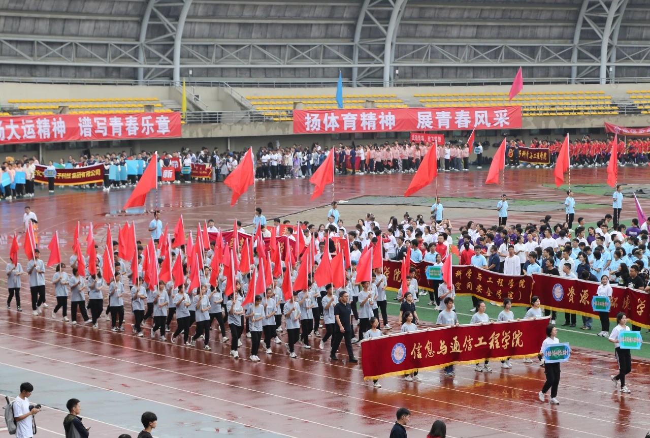 在开幕式方阵入场式中,公司师生代表队形整齐、精神抖擞,迈着铿锵有力的步伐,展现了不屈不挠、勇往直前的精神风貌。随着《精忠报国》的乐声响起,旗手们依次散开,跟随鼓声有力挥动红旗,动作整齐、节奏利落。近百名方阵人员齐声喊出“听党指挥,科技报国”的响亮口号,赢得现场热烈持久的掌声。