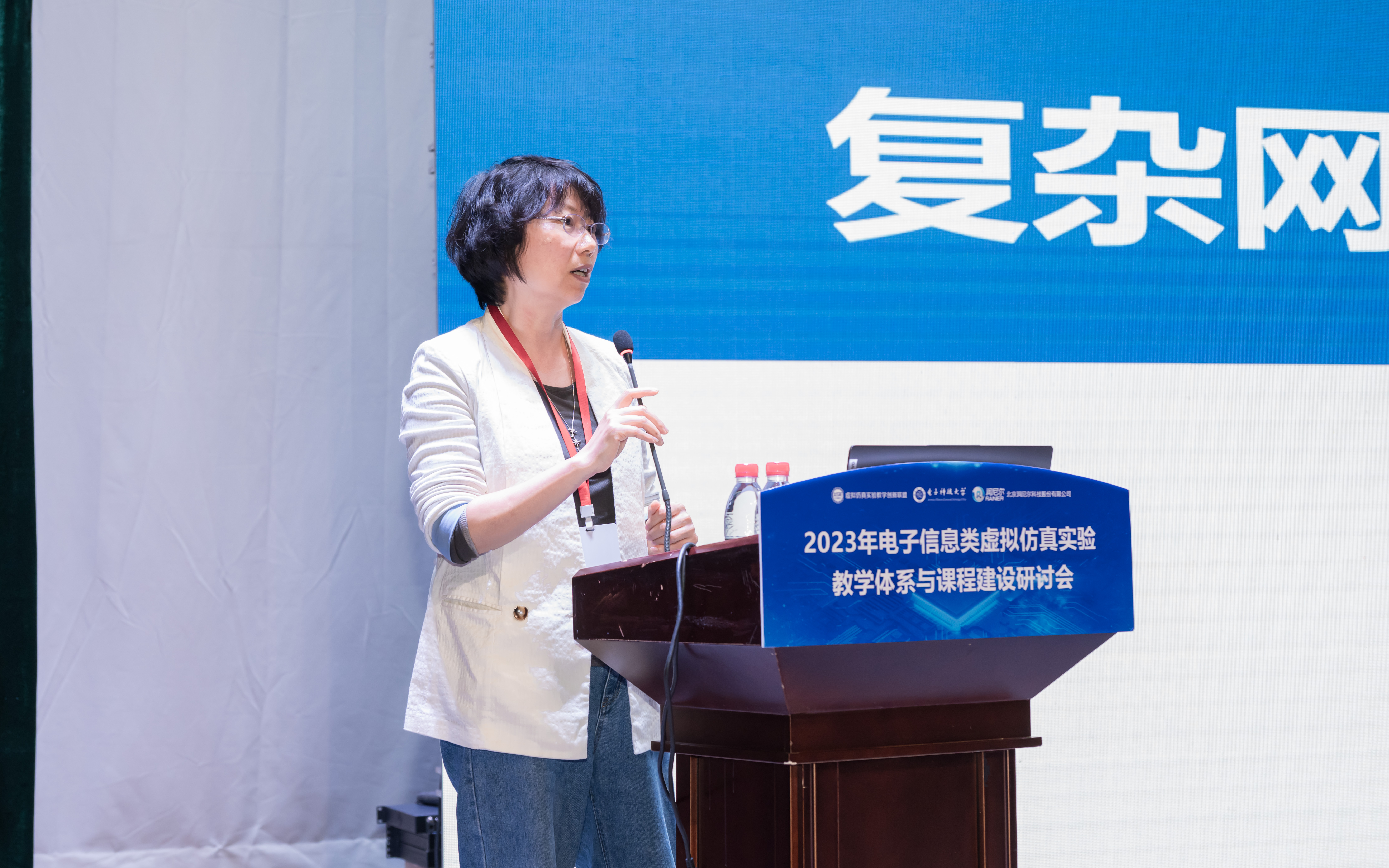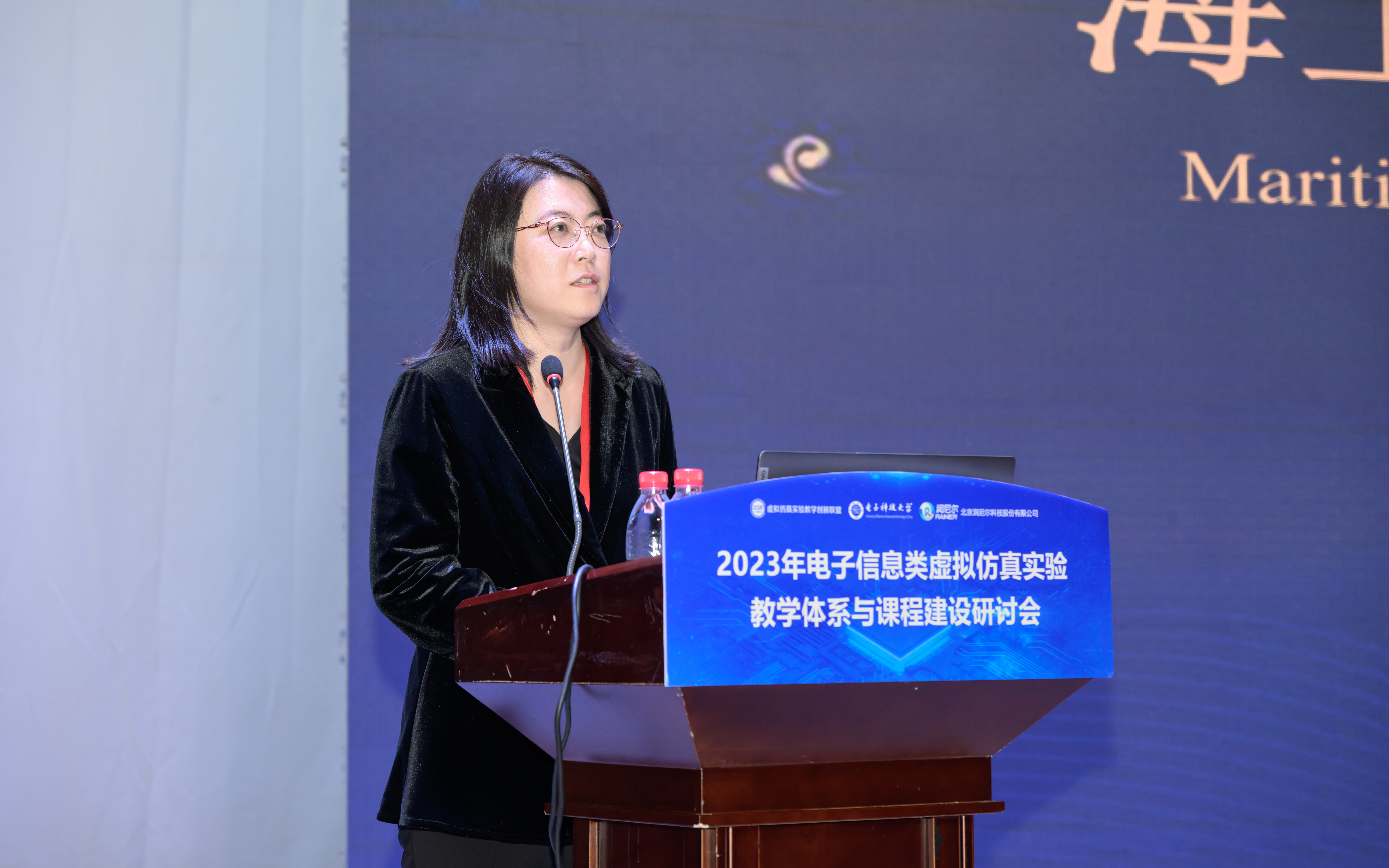 在一流虚仿实验课程展示环节,6个报告涵盖了集成电路、雷达、通信、网络主流方向。北京航空航天大学张玉玺副教授以克服传统实验局限性,使雷达系统走进课堂为切入点,介绍了空天防御雷达虚仿实验如何在认知、设计、综合三层次开展教学,并与毫米波雷达实物实验虚实结合。北京邮电大学赵同刚教授介绍了从远程实验到VR技术在实验教学中应用历程,并以“基于VR 的集成电路设计、制造与测试虚拟仿真实验”为例,分享了科创赛教融合经验。浙江大学马洪庆老师作了《“5G三大应用场景系统工程虚拟仿真实验”国家级一流课程建设》的报告,对总体架构、三大实验场景、评价机制进行介绍。西安交通大学罗新民教授全面介绍了通信与信息系统国家级虚拟仿真实验中心的建设,围绕无线通信系统虚拟仿真实验“做什么”“怎么做”思路,分享了一系列虚仿实验的建设经验。大连海事大学林彬教授介绍了海上应急通信虚拟仿真实验点线面体四层次、“三融合”特色,在服务高校、行业、社会方面发挥了积极效果。太阳成集团tyc151cc虞红芳教授从国家重点研发计划成果如何转换为实验教学资源角度,介绍了复杂网络协议分析虚仿实验平台,详细阐述了网络实验床体系框架和核心技术。