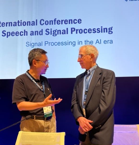 图2在ICASSP 2023会议上,朱策与奥本海姆教授进行学术交谈