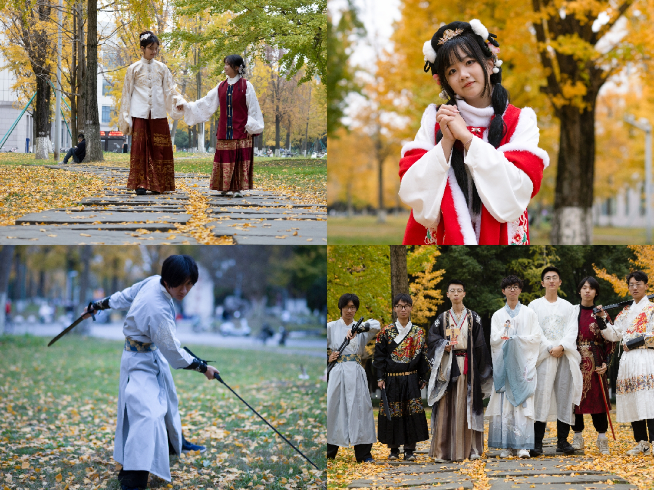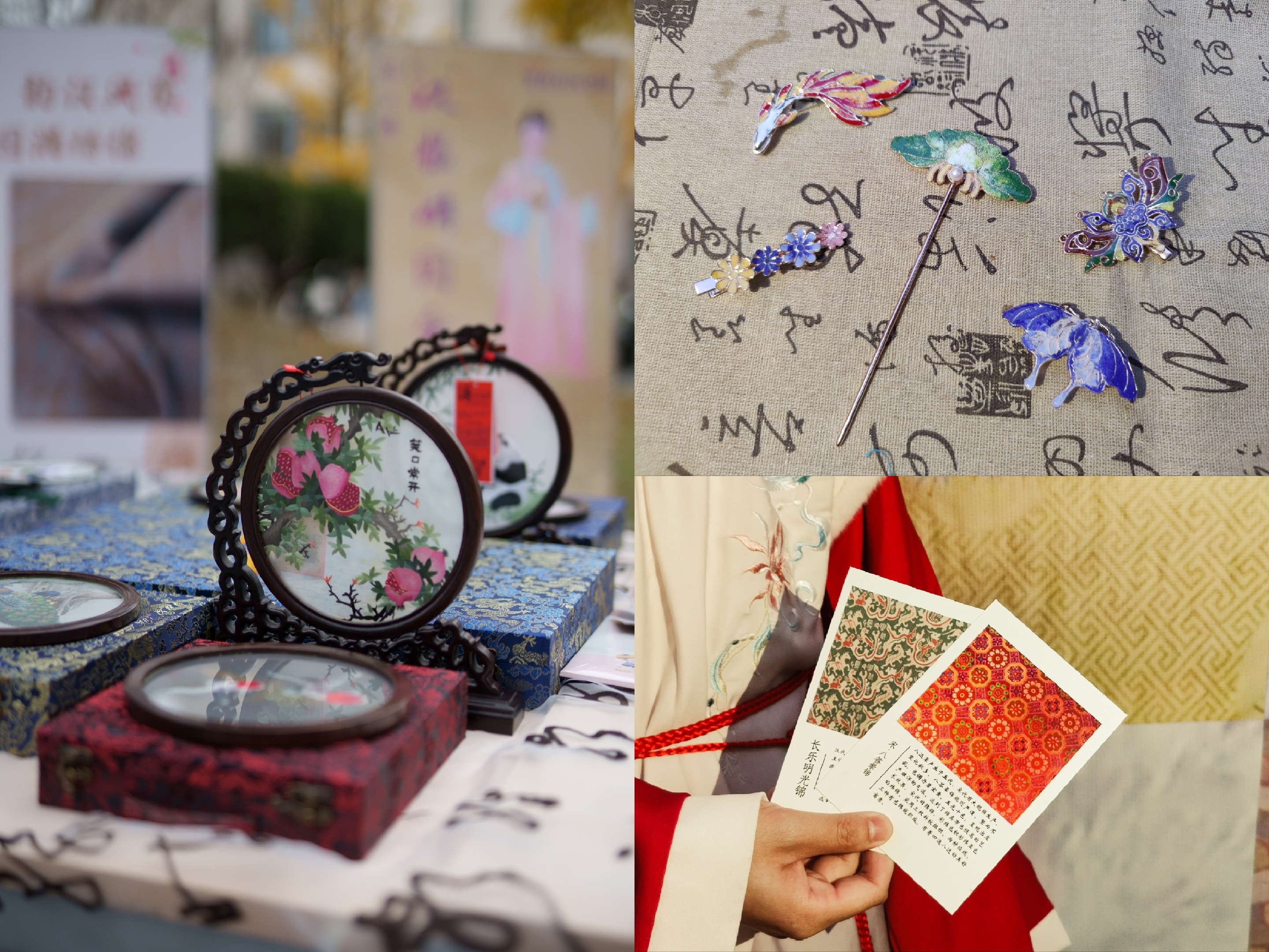蜀绣蜀锦亦陈列在周,同学们结伴游于河畔之侧,荡漾于银杏之间,观赏着古代传统的手艺重现于眼前,欣赏着蜀绣蜀锦的美轮美奂。漫步于银杏路中,洋溢着张张笑脸,他们重温着古时人们的欢乐。
