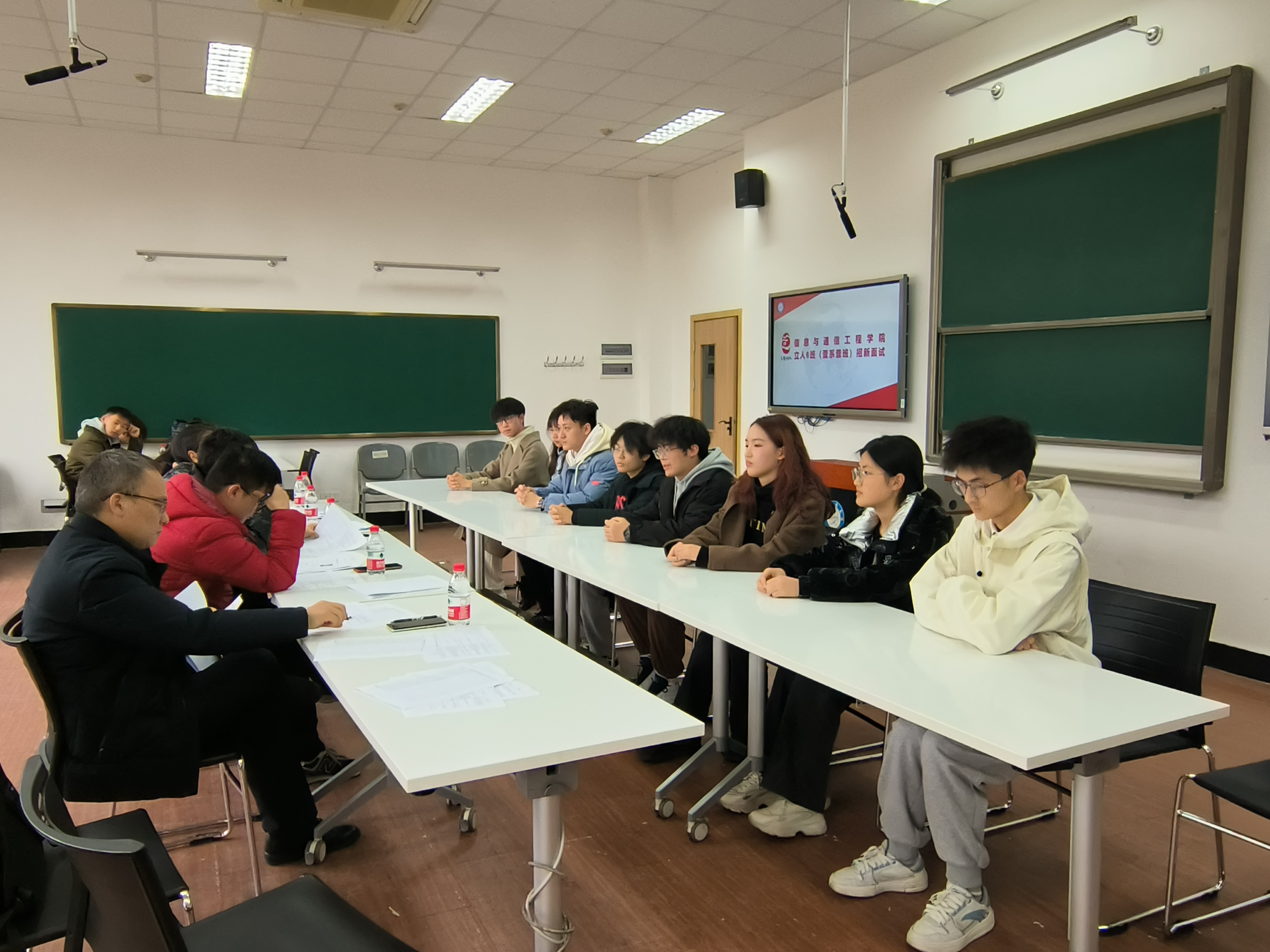 同学们被分为六个小组,在两个教室中同步进行面试。每位同学依次进行自我介绍,展示个人特色与专长。在回答评委的提问时,同学们表现出从容自信的态度,针对与项目参与和学科相关的问题,都给出了自己独到的见解和看法,充分展示了信通学子深厚的知识底蕴和全面的综合素质。