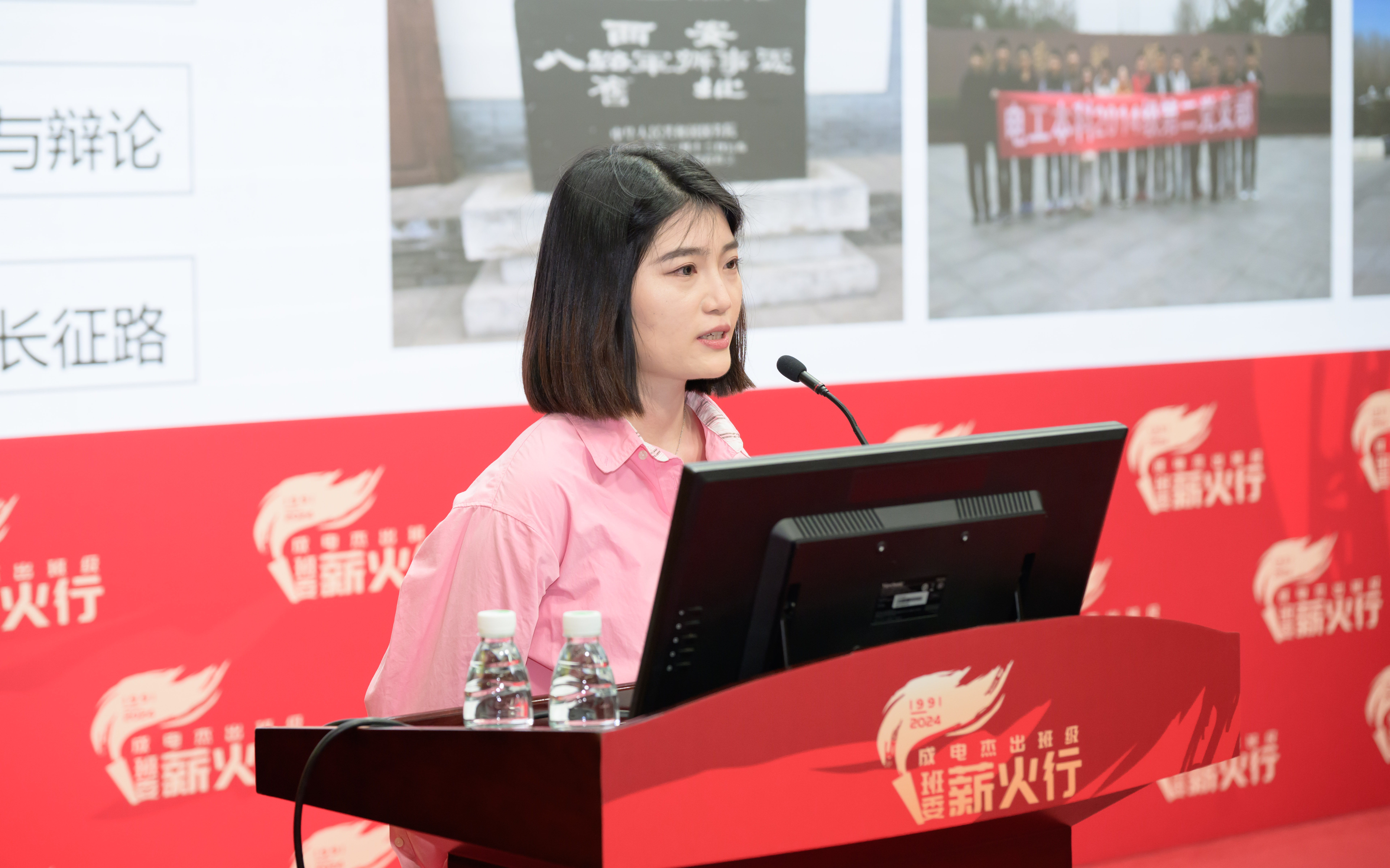 14级7班员工代表、员工党支部书记黄羽帆带来党支部建设经验分享。通过“成电精神代代传”“红色踪迹家乡觅”“成电校园长征路”等支部特色活动,传承红色基因,弘扬成电精神。“把有意义的事情做得有意思,把有高度的事情做得有温度”是黄羽帆和支部同学们的工作理念,也贯穿了他们大学四年和踏入职场后工作生活的方方面面。在展示支部集体和个人荣誉时,黄羽帆寄语同学们跟身边优秀的同学相互学习、相互支持,与优秀的集体共成长。