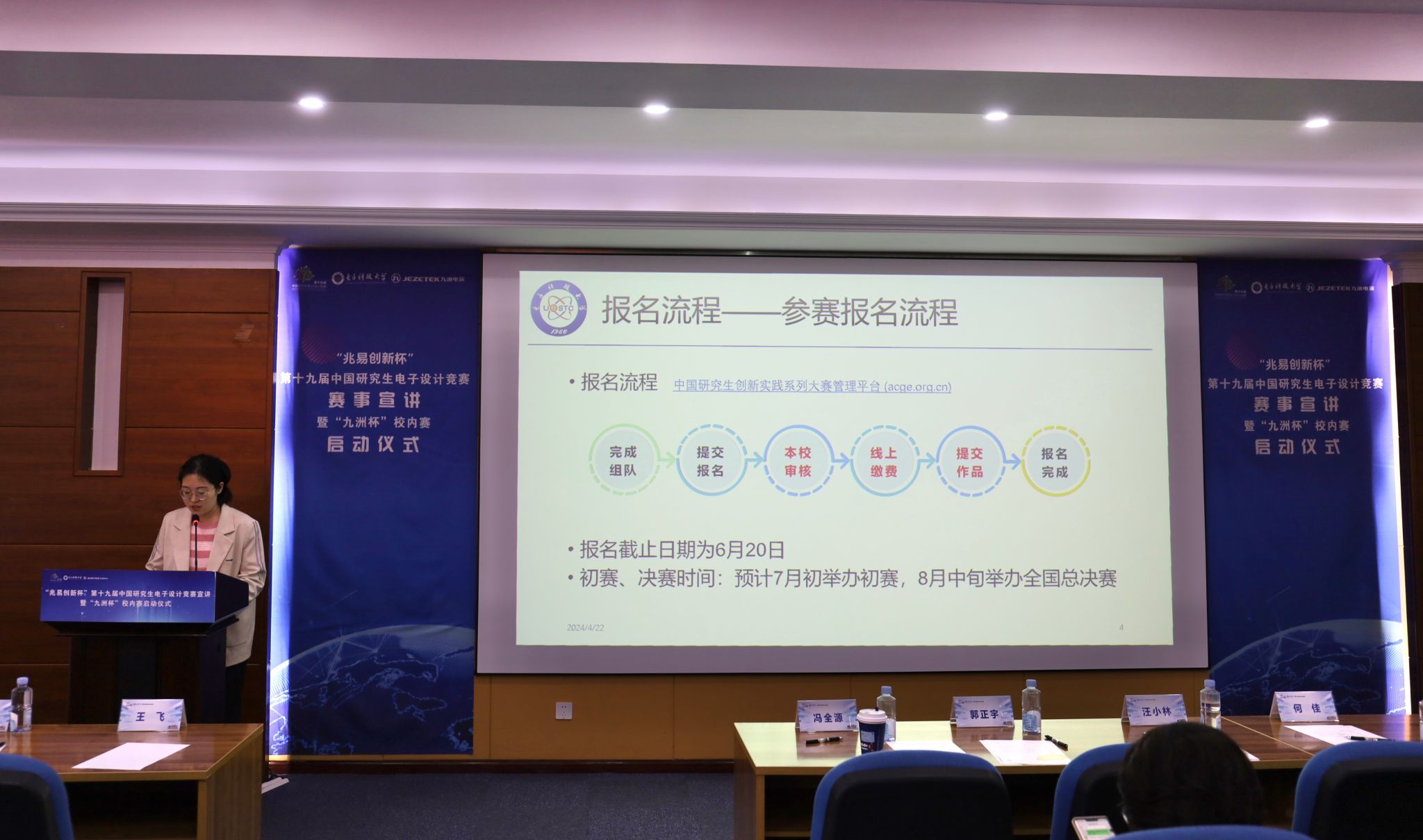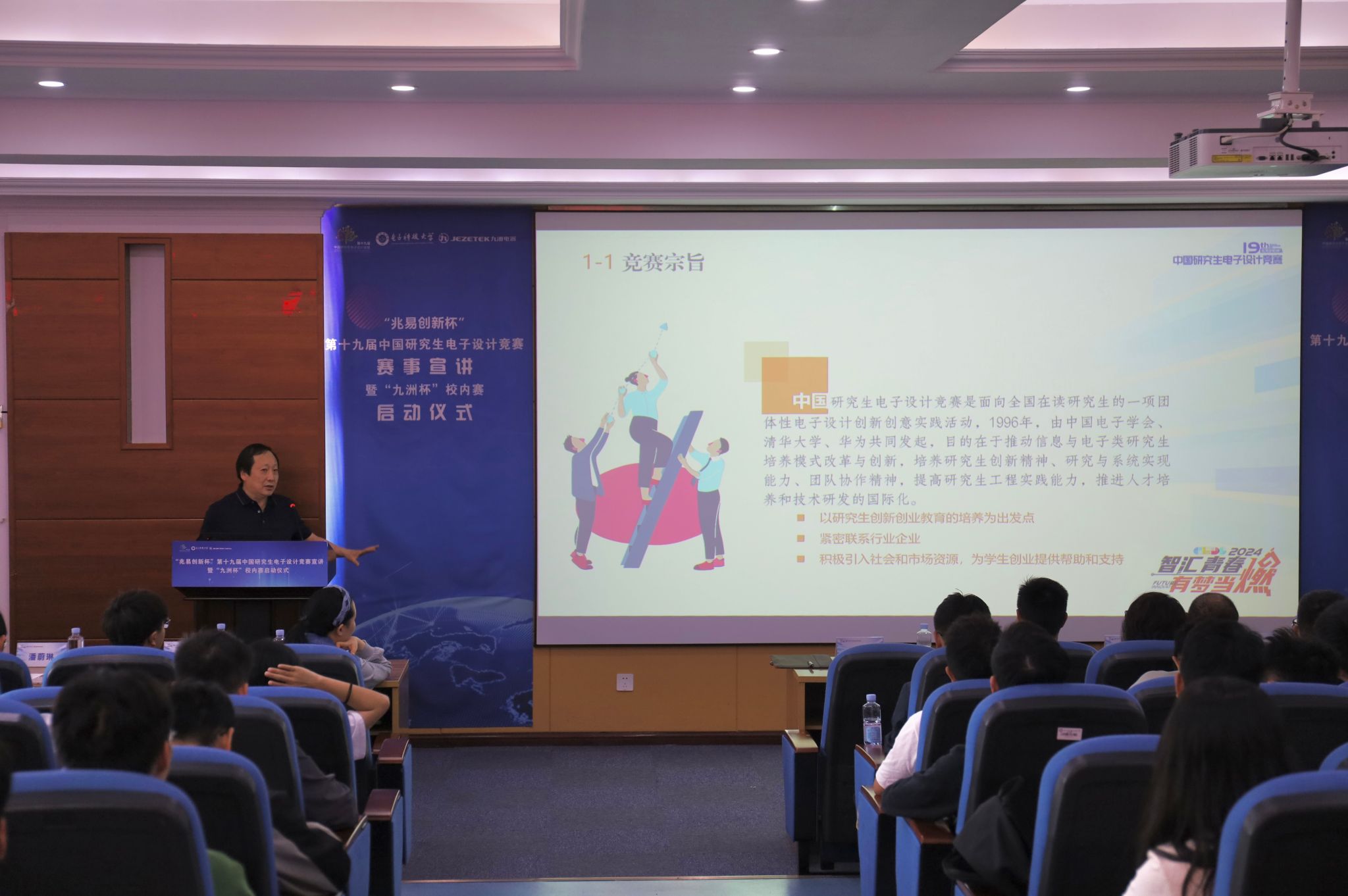 2024年4月22日下午,“兆易创新杯”第十九届中国研究生电子设计竞赛宣讲暨“九洲杯”校内赛启动仪式在清水河校区科研楼C区顺利举办。本次活动为同学们带来了精彩的赛事宣讲以及参赛经验分享,进一步提升产教融合协同办赛实效,培养研究生创新实践能力,提升公司员工参赛作品质量。中国研究生电子设计竞赛专家委员会委员冯全源、四川九洲电器集团有限责任公司首席专家汪小林、研究生管理处副处长郭正宇、公司党委副书记何佳、公司竞赛指导老师代表、多家企业代表出席活动。