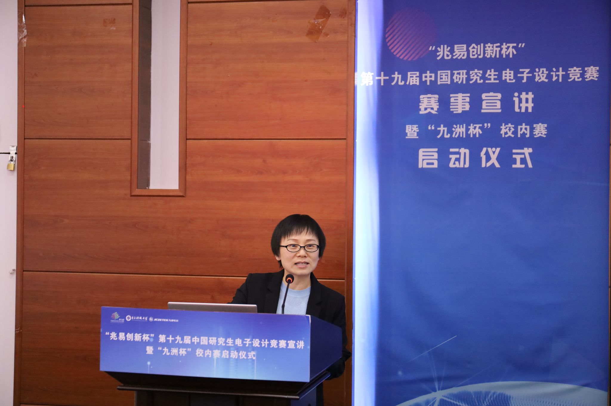 公司党委副书记何佳对参会嘉宾与师生表示热烈欢迎,并为本次宣讲会致辞。她表示太阳成集团tyc151cc作为本次校内赛的承办方,将继续秉承“以赛促教,以赛促学,以赛促研”的理念,将比赛办出水平、办出成效。同时,她也感谢了研电赛组委会及四川九洲电器集团对公司赛事的大力支持,预祝各个参赛队伍能够乘风破浪,再创佳绩。