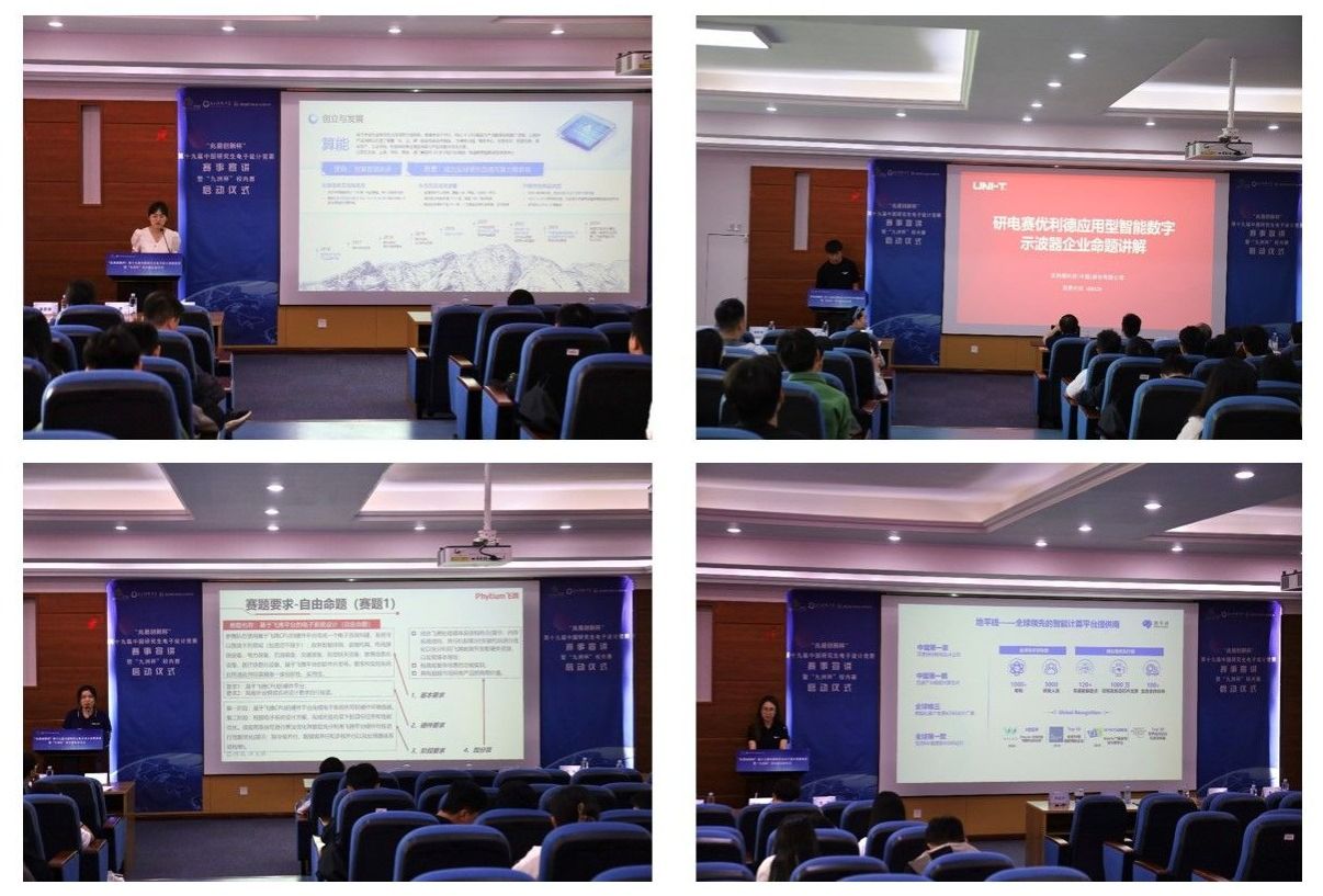 优利德科技(中国)股份有限公司代表薛寒、北京算能科技有限公司代表潘蔚琳、飞腾信息技术有限公司代表闫茹、地平线公司代表姜瑞滢为在场师生分享了企业在电子设计领域的前沿技术和应用案例,详细解析今年研电赛的企业比赛命题,并就相关技术问题与老师和同学们进行了深入的交流与讨论。