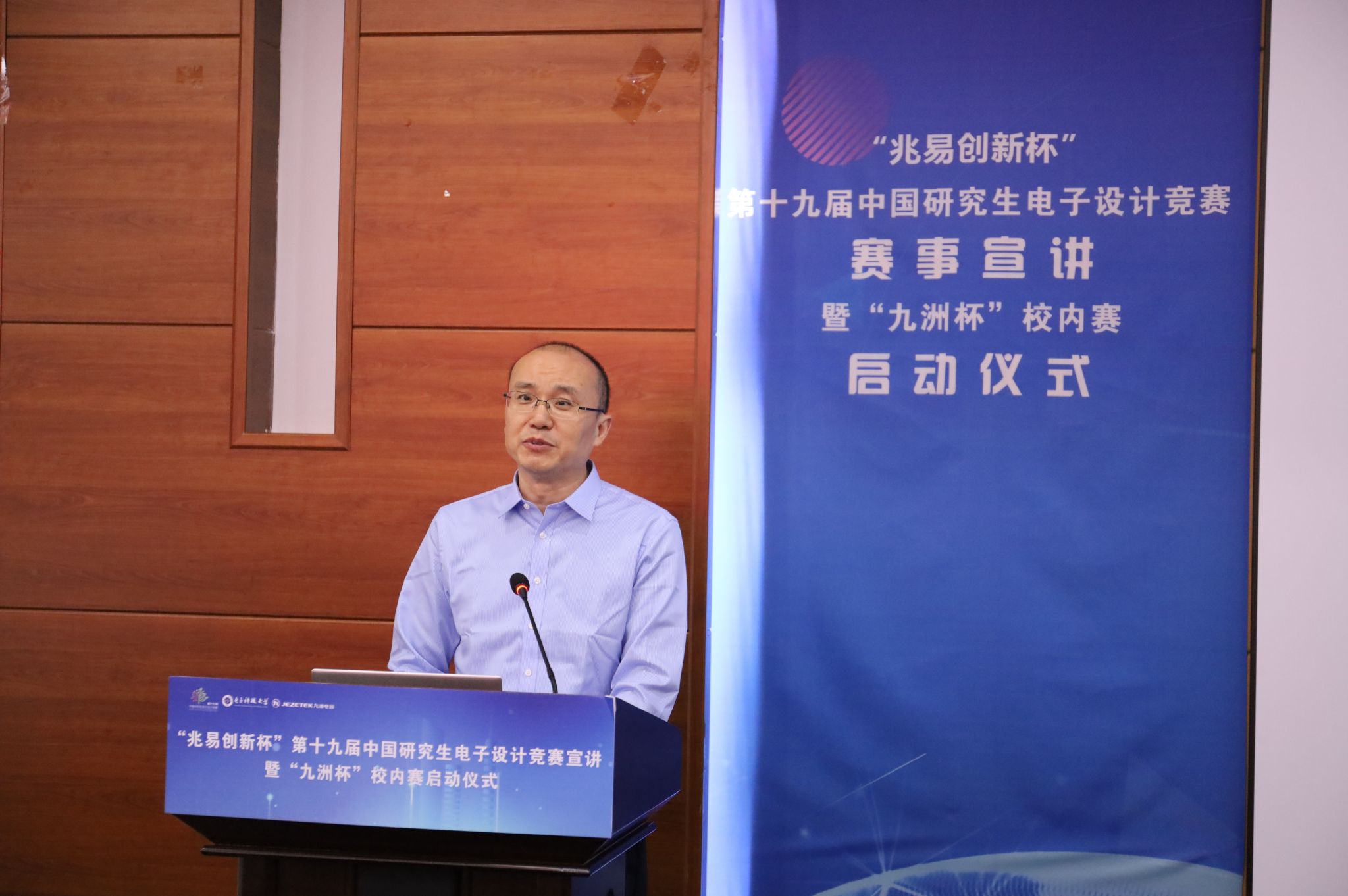 接着,四川九洲电器集团有限责任公司首席专家汪小林对参与此次仪式的师生表示衷心的感谢,并为“九洲杯”校内赛启动仪式致辞。他表示,中国研究生电子设计竞赛作为“中国研究生创新实践系列大赛”主题赛事之一,与我国电子信息产业发展紧密相关。他鼓励员工积极参与竞赛,发挥科研创新能力,为我国电子设计领域的技术进步和产业发展注入新的活力。