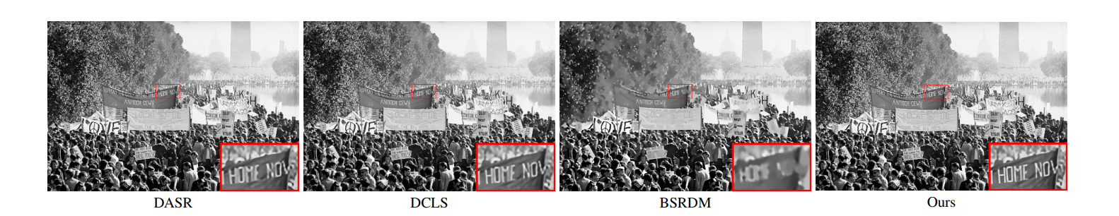 论文方法与近年来多个图像盲超分辨率SOTA方法进行了实验对比,取得了最优的效果(图7)。