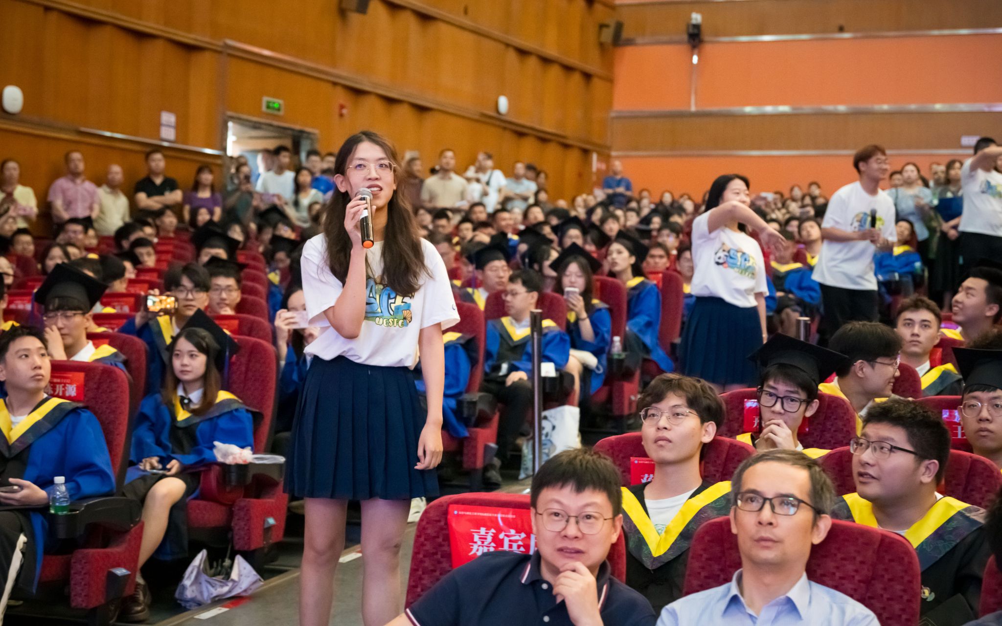 2023年度成电杰出员工、2024届博士研究生王岚晓同学作为毕业生代表发言。她以一名新时代青年学子的视角分享了自己的求学感悟和未来展望。同时强调了团队协作的重要性,希望学弟学妹们在科研的道路上不畏困难、勇往直前,胸怀梦想、为国担当,将个人发展与国家发展紧密结合。