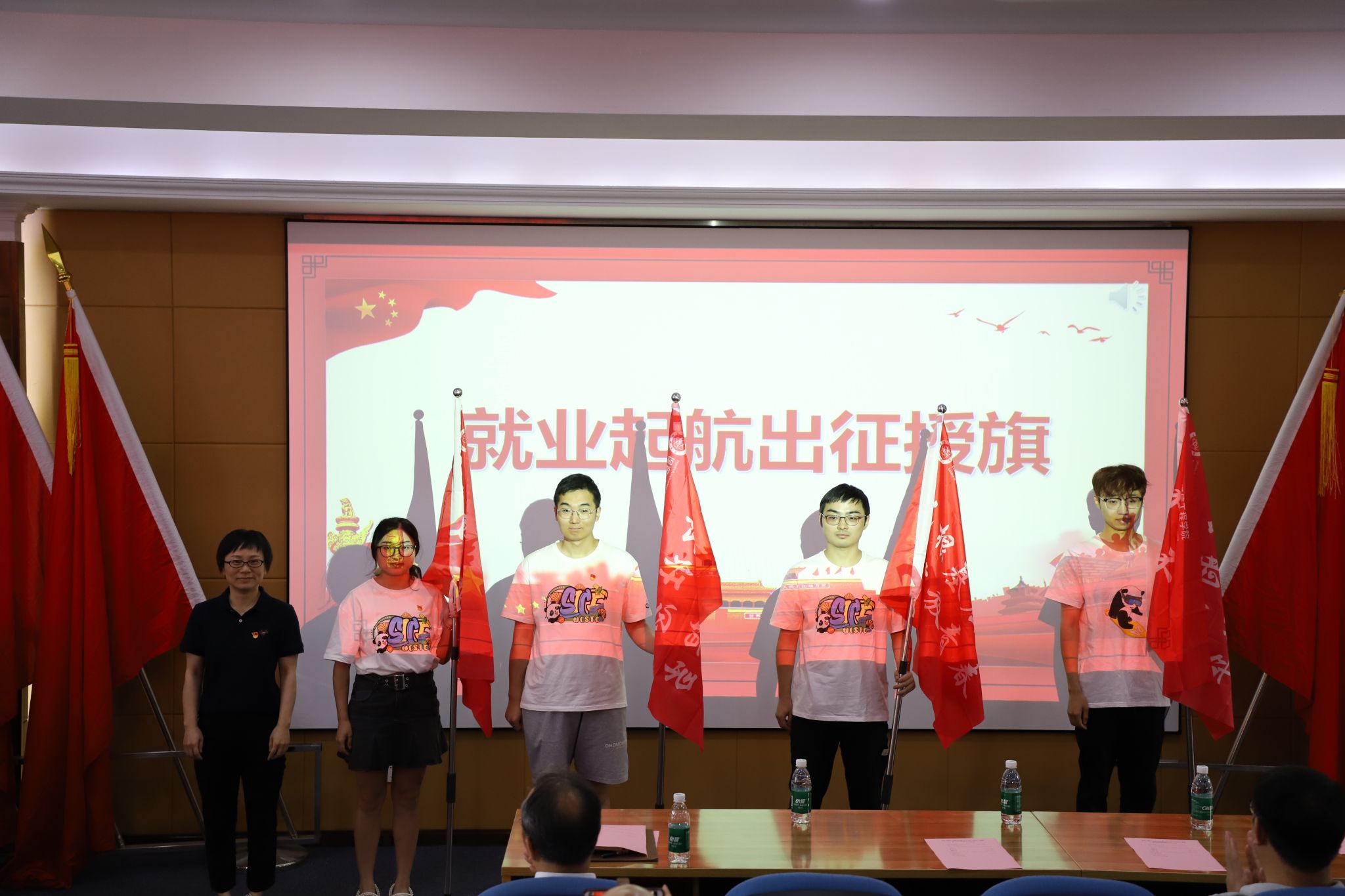毕业生就业启航出征授旗仪式上,公司党委副书记何佳为赴西部、基层、部队、国防重点单位等工作的毕业生代表授旗。同学们依次分享了自己扎根基层、献身国防的青春志向和不负青春、科技报国的坚定决心,同时表达了对公司培养的感激之情。