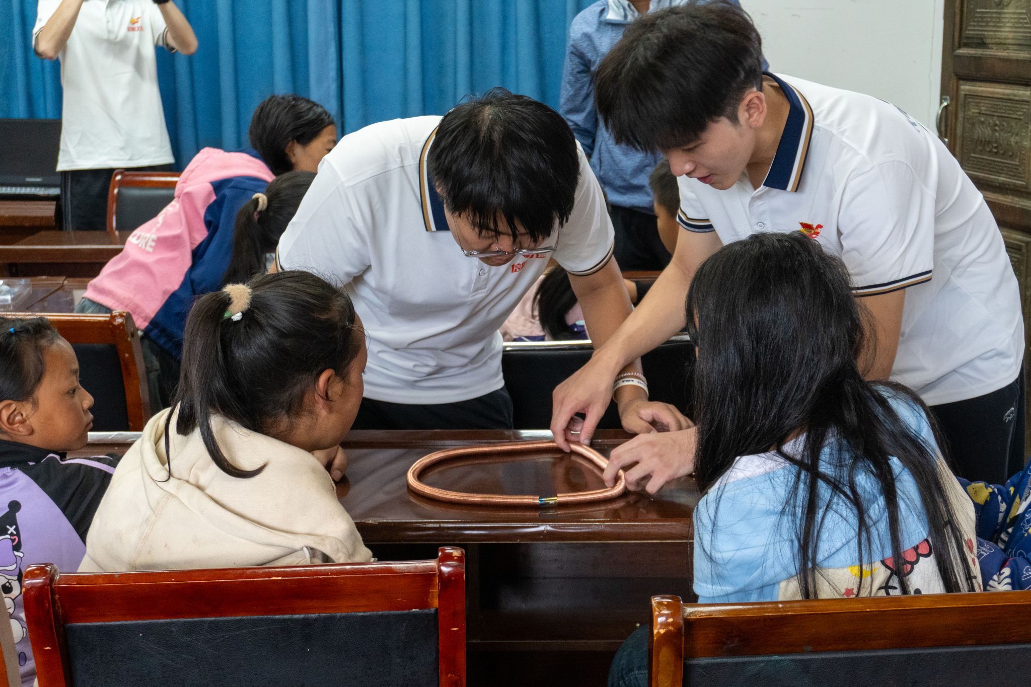 乡村儿童对于科技知识充满渴求,老员工们正是帮助点亮他们科技梦想的好朋友和“好老师”。