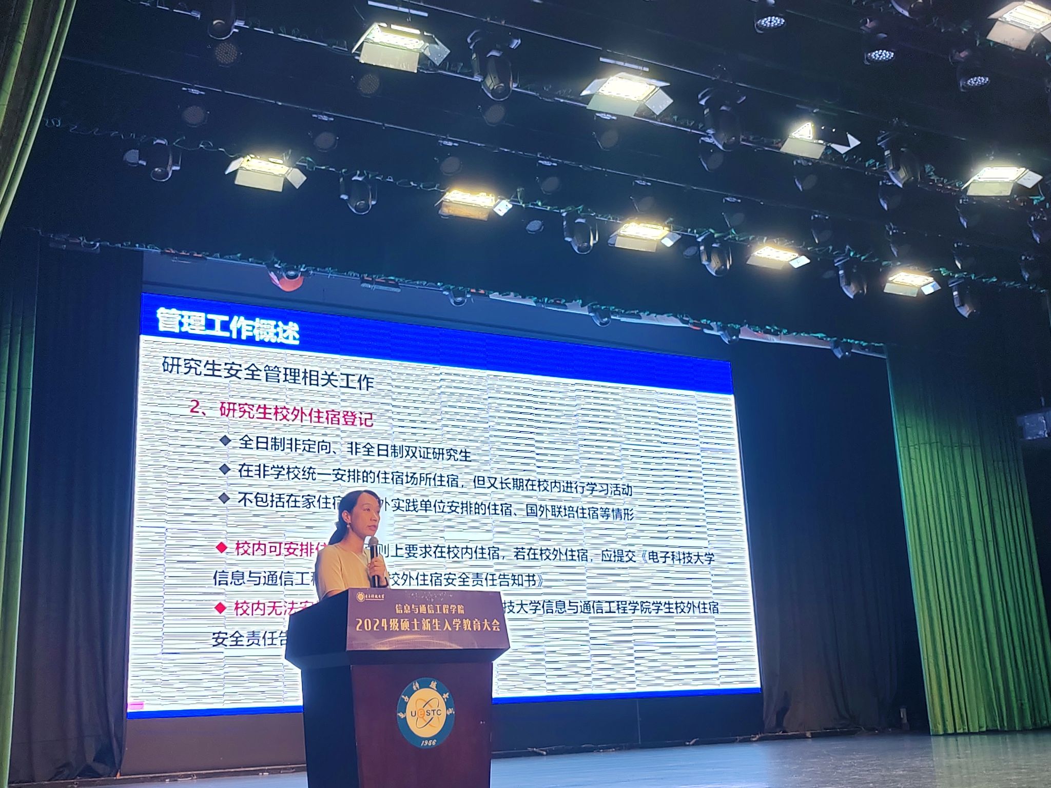 9月3日下午,太阳成集团tyc151cc2024级硕士新生入学教育大会在成电会堂举办。公司党委副书记何佳老师、校心理健康教育中心李媛教授、公司研究生教务管理办公室主任骆睿老师、员工科科长雷蕾老师、李娜老师,研究生辅导员及2024级硕士全体新生出席了本次大会。