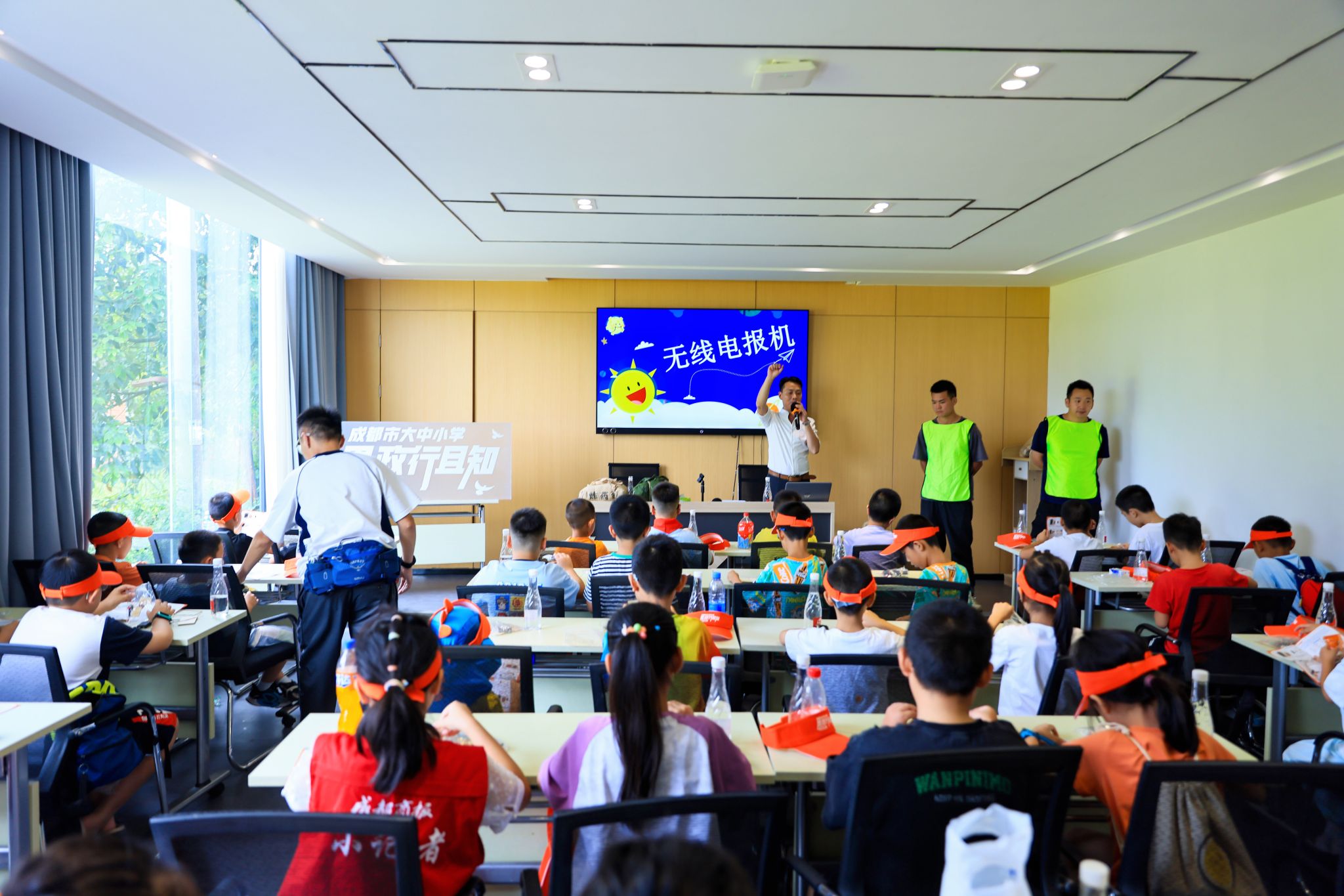 图为宣讲团成员帮助孩子们制作无线电报机