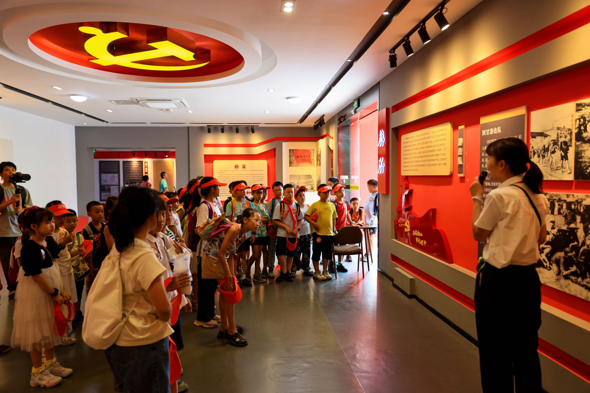 图为讲解员在跟孩子们介绍游击战历史