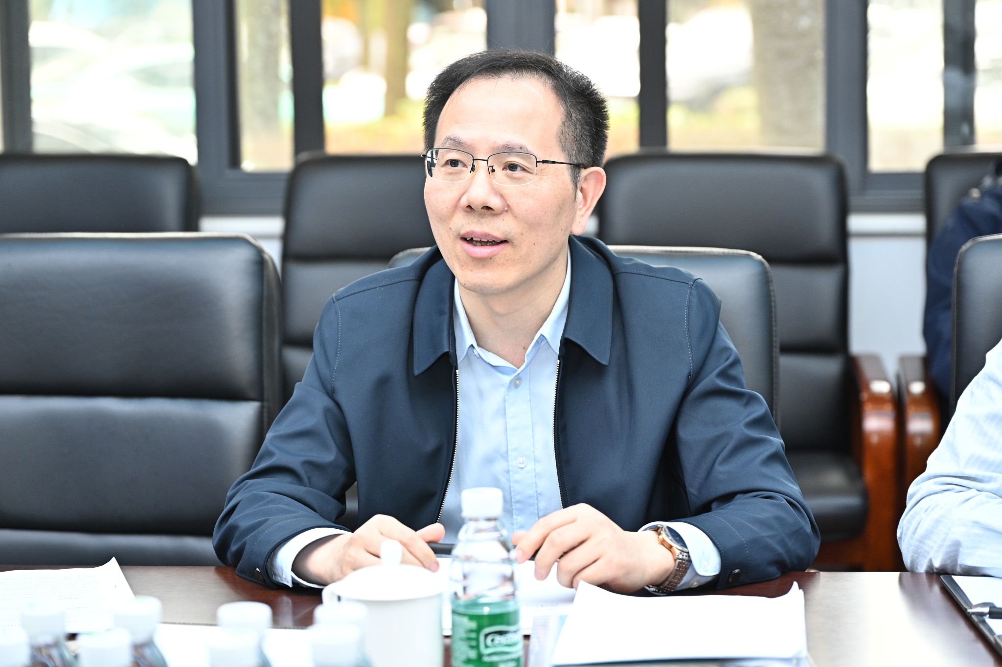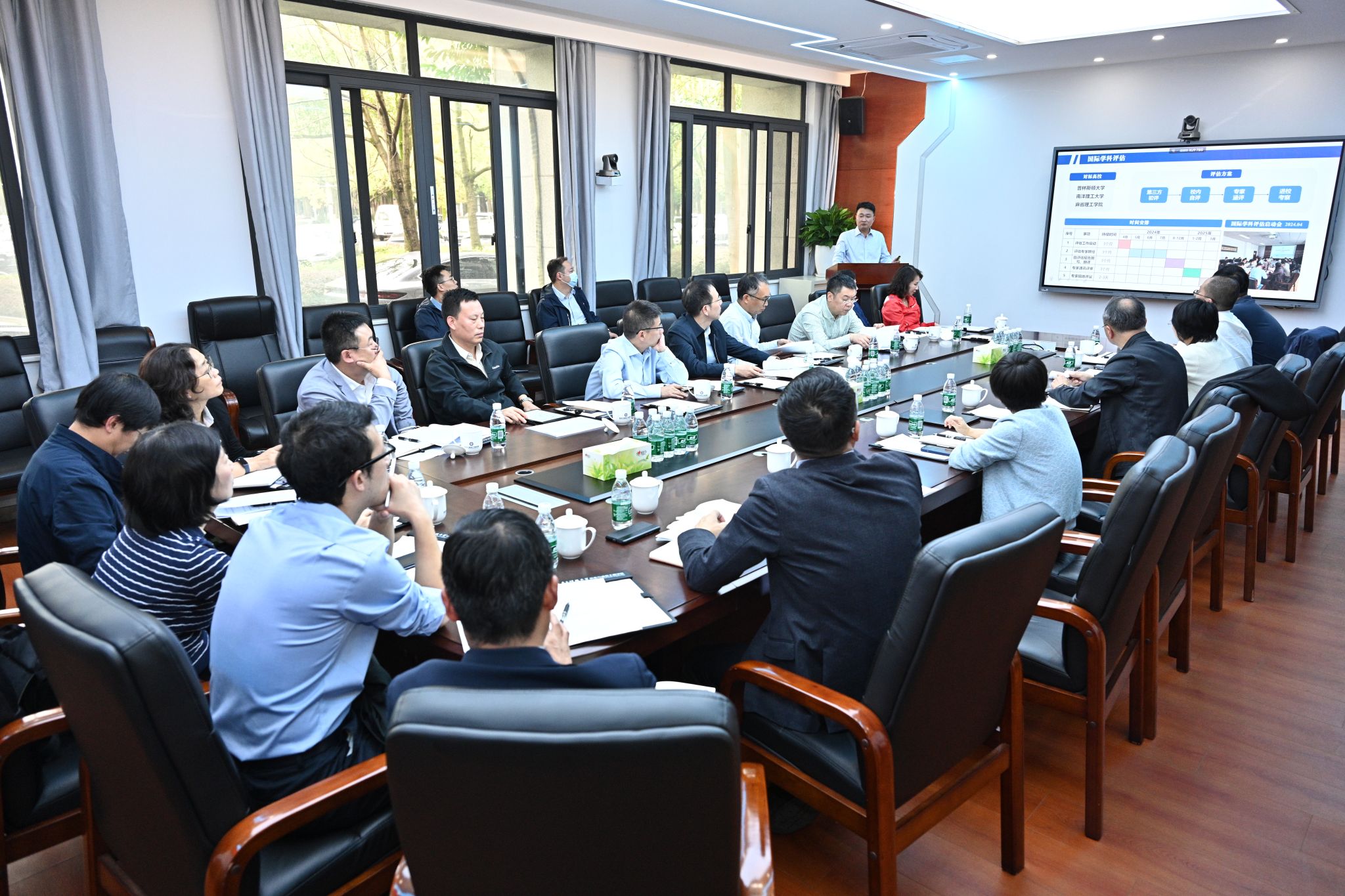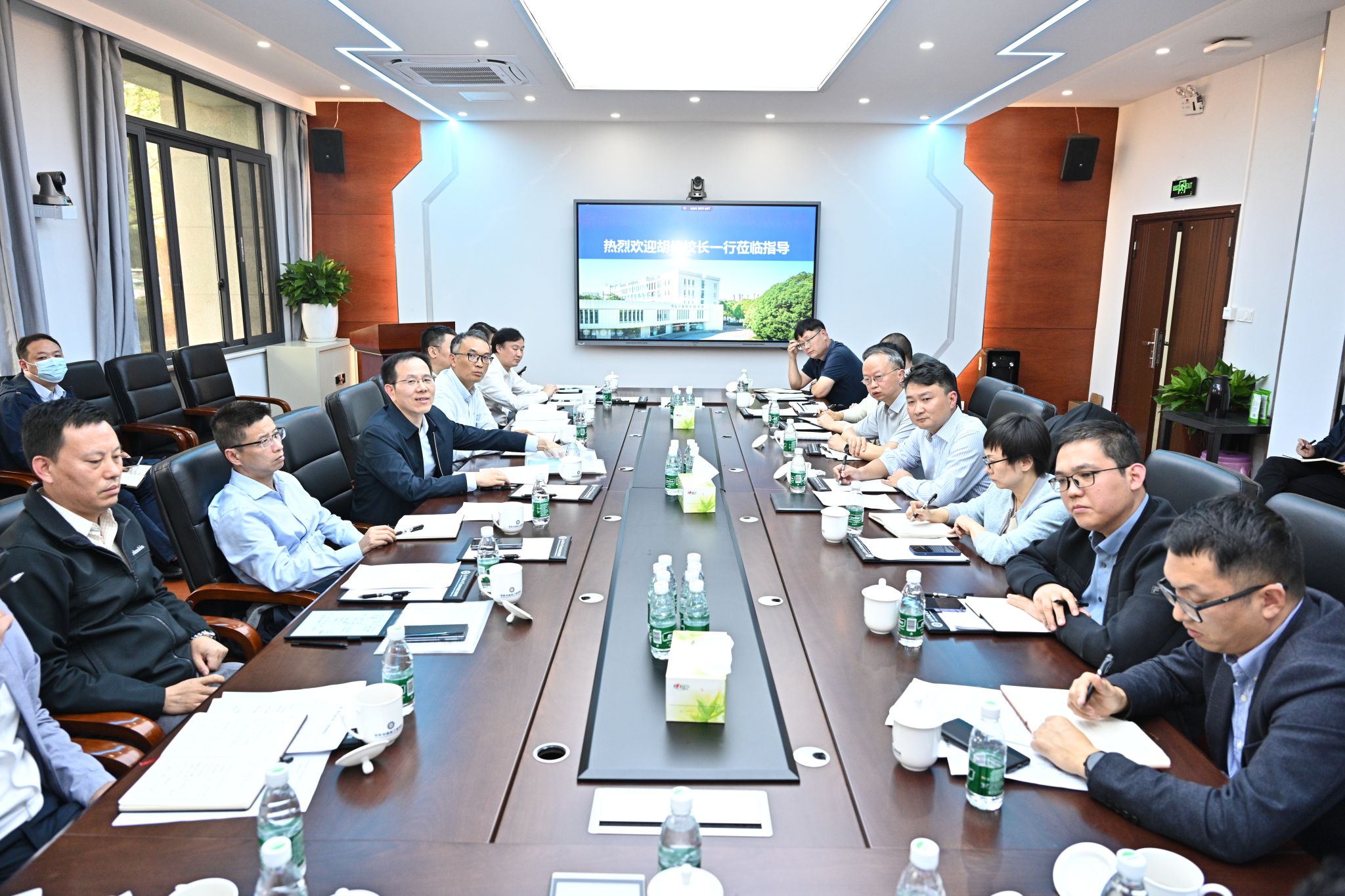 太阳成集团tyc151cc经理黄钰林代表公司对胡俊董事长一行莅临指导表示热烈欢迎,全面阐述学科基本情况和发展现状与趋势,详细介绍了团队建设大讨论推进情况,并从党建思政、人才培养、科学研究、团队队伍、国际交流五个方面,重点汇报全年目标任务进展情况以及聚焦战略目标和核心指标等重点任务。