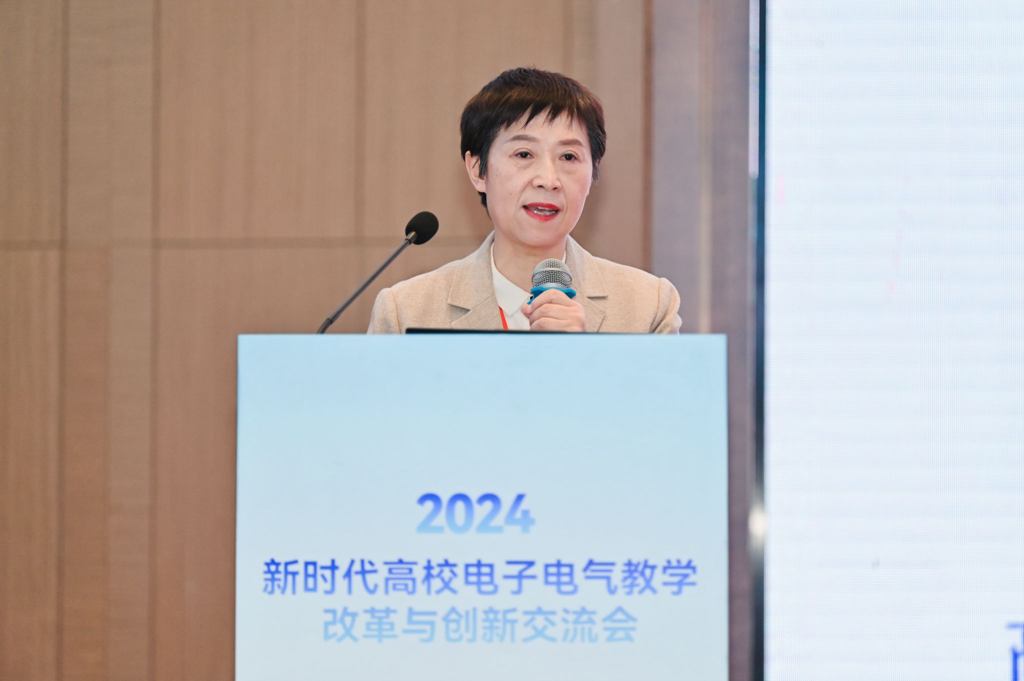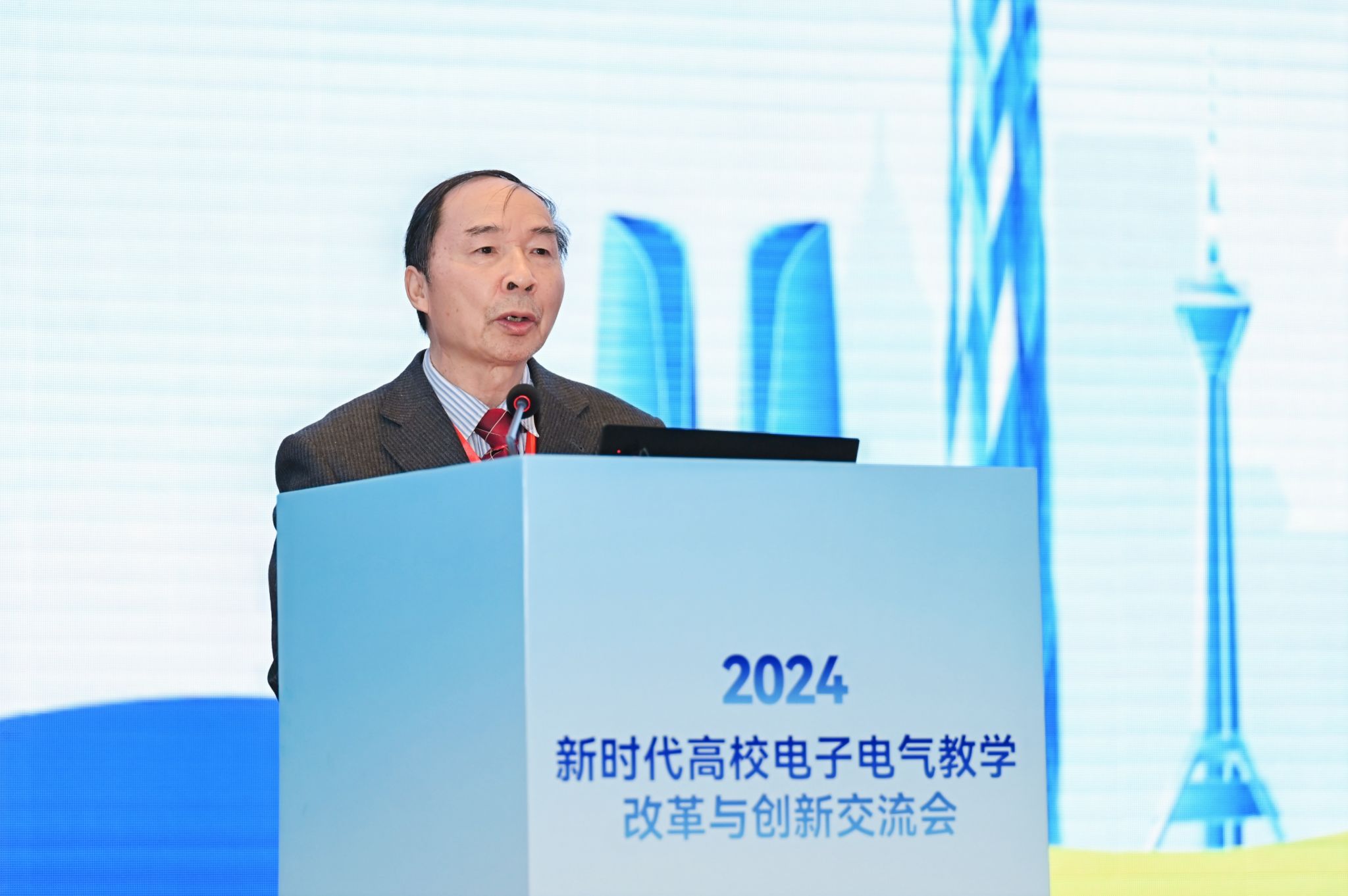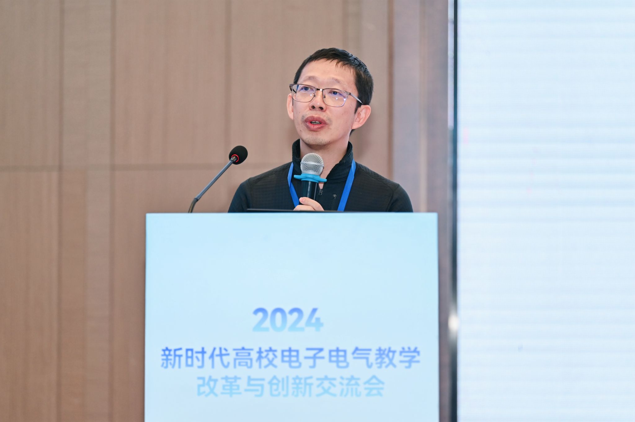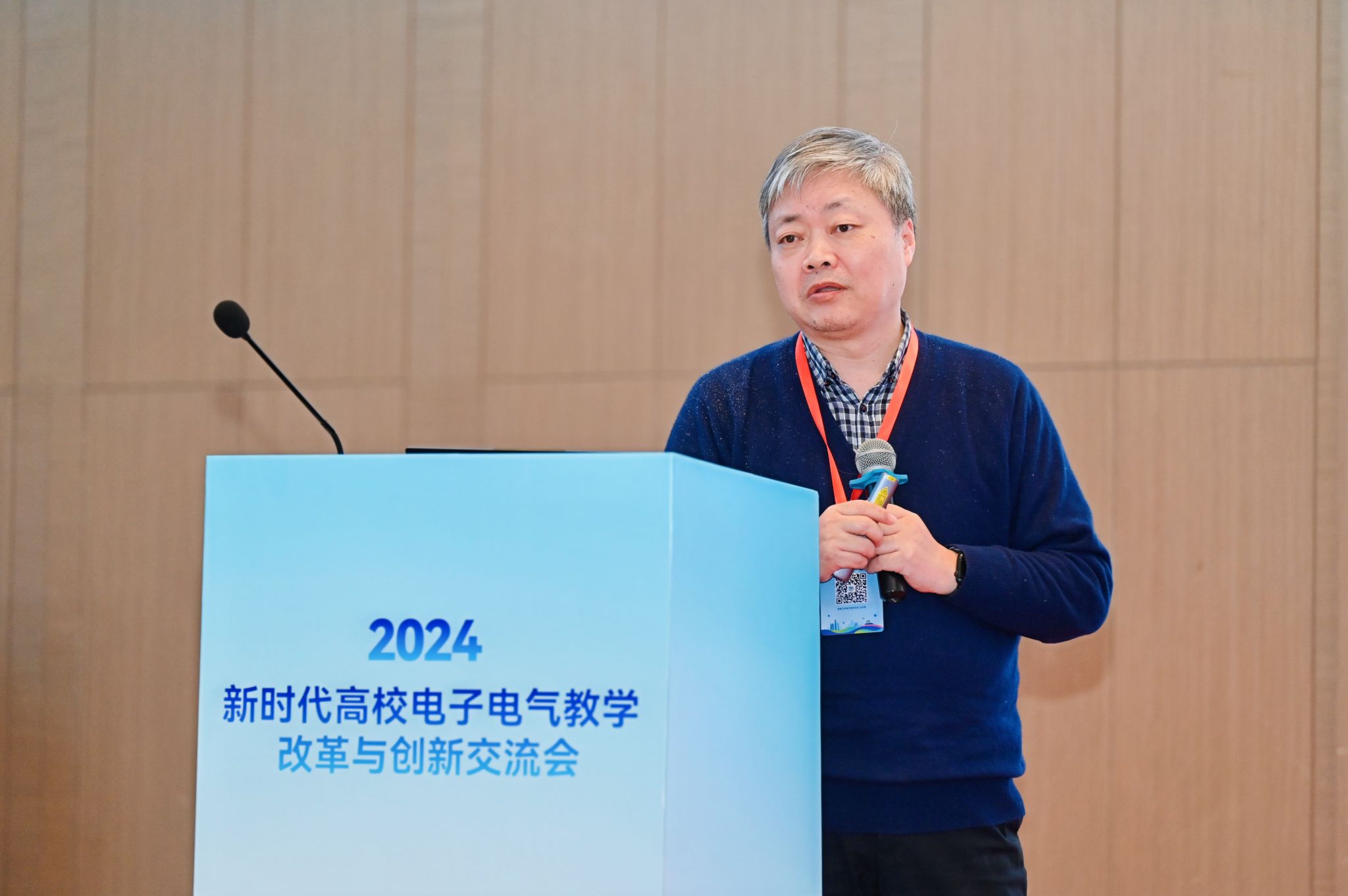 电工电子基础课程教学指导分委员会主任王志功在开幕式上发表致辞,他提到当前党和国家高度重视高等教育质量提升与创新改革,特别是教育数字化、人工智能赋能以及交叉学科、新兴团队建设。本次交流会围绕教育强国建设背景下的人才培养与课程教材建设展开,旨在推动信息技术与公司产品的深度融合,促进教学模式创新改革。该交流会已连续举办19届,为广大一线教师搭建了交流学习平台,对高等教育发展起到了极大促进作用。王志功希望与会者能集思广益、畅所欲言,为加快推进教育现代化、建设教育强国、办好人民满意的教育做出贡献,并预祝交流会圆满成功。