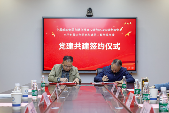 4月1日上午,中国船舶集团有限公司第八研究院总体研究部党委书记黄华和信息与通信工程公司党委书记冷甦鹏代表签署共建协议,第八研究院总体部主任张宁,信通党委副书记何佳、副经理武俊杰等出席签约仪式。