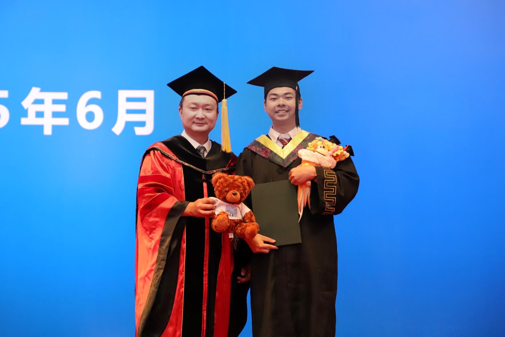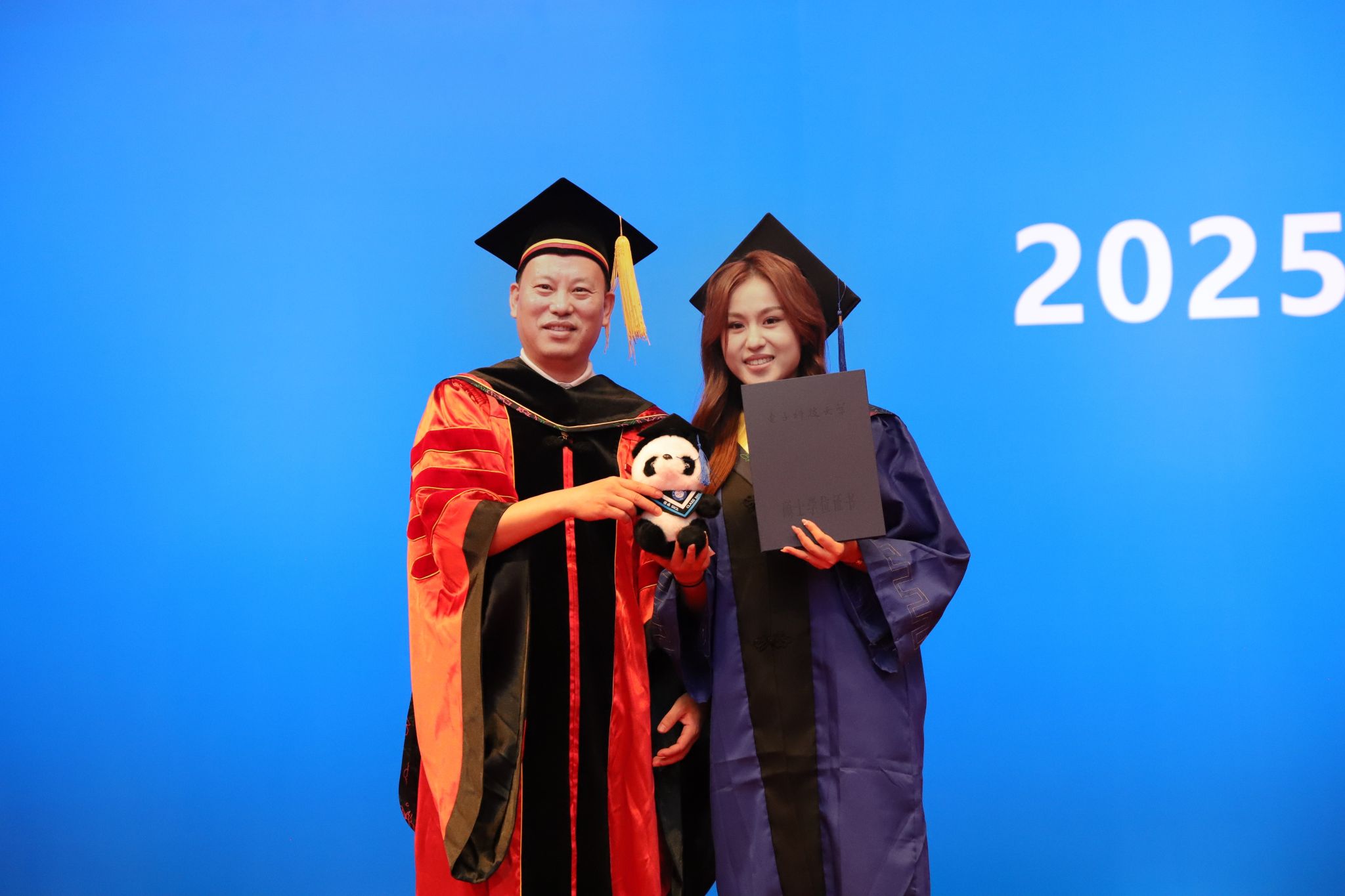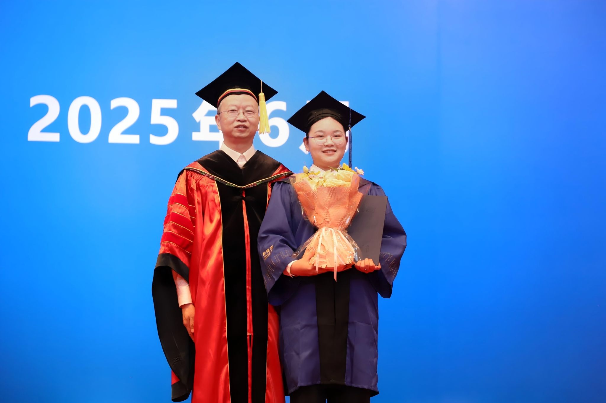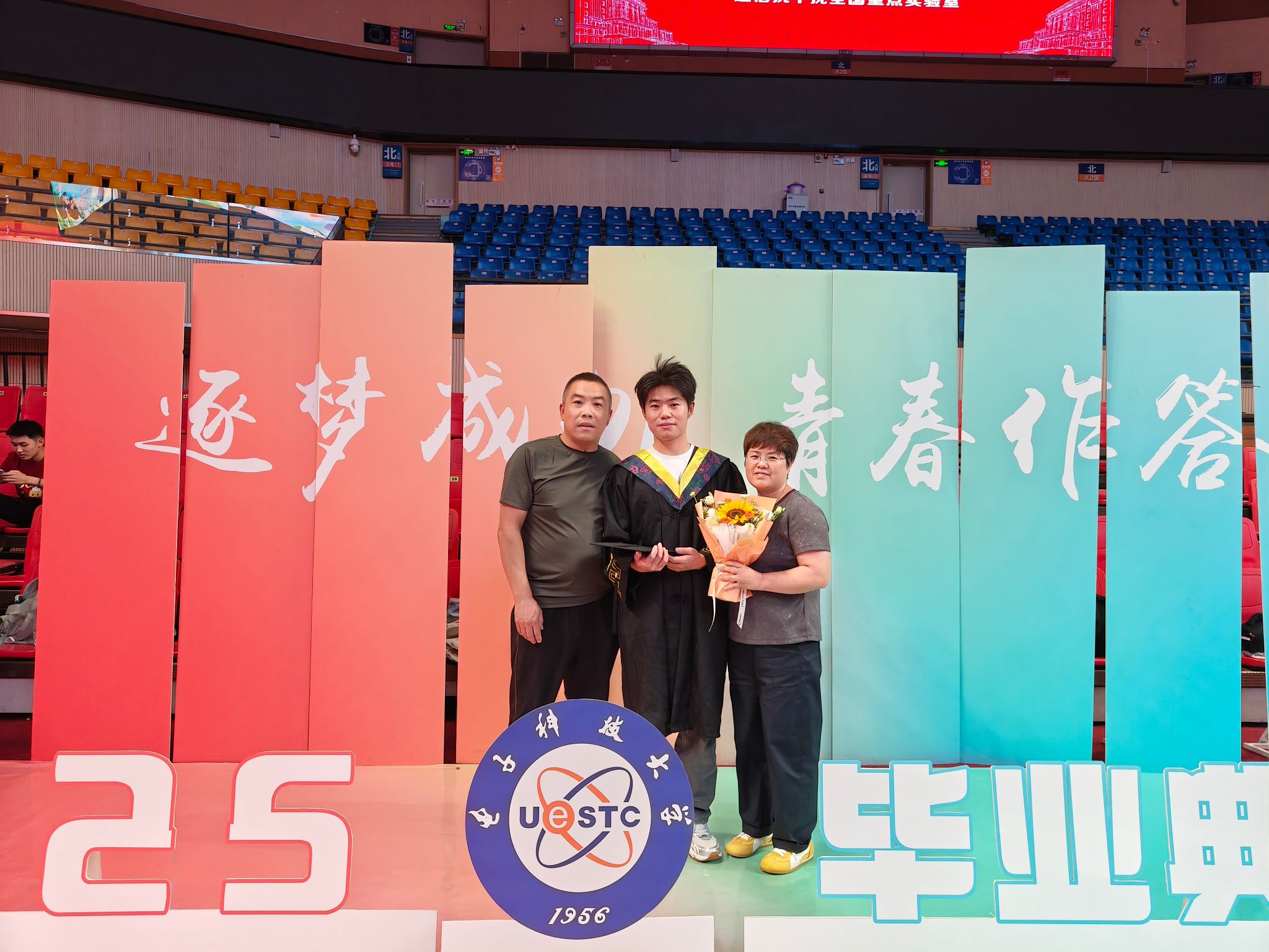2025届本科毕业生汪上策作为毕业生代表发言,他用“突破、选择、感恩”三个关键词回顾了大学四年的蜕变历程,呼吁毕业生们牢记“求实求真,大气大为”的成电精神,在未来的时代浪潮中乘风破浪,谱写无愧于时代的青春华章。