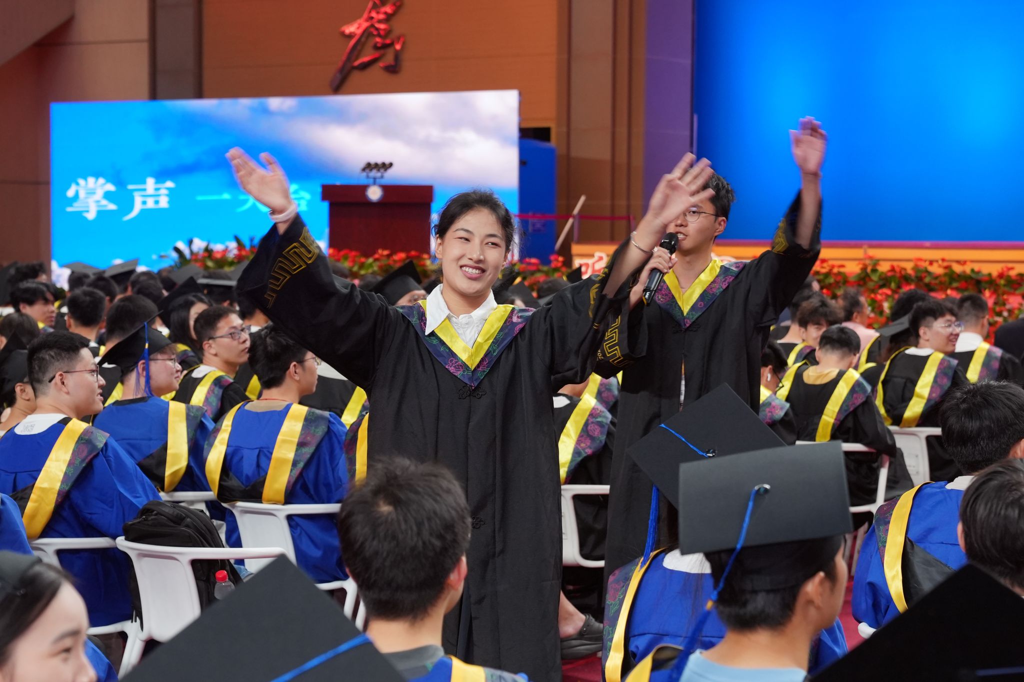 毕业生代表带来歌曲《逐空》,将现场氛围推向高潮,他们用歌声唱响不甘平庸、勇破荆棘的青春誓言,为奔赴未来的新程注入奋进力量。