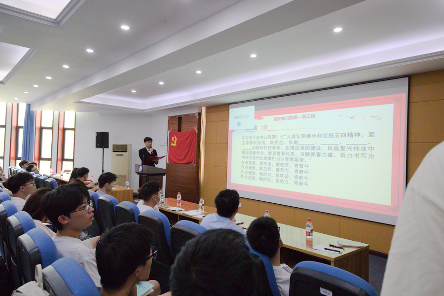 在理论知识竞赛环节,同学们围绕习近平新时代中国特色社会主义思想、党的二十届三中全会精神及党史知识展开竞答。限时答题充分考验了同学们理论素养与临场应变能力,并进一步加深了对理论知识的理解。