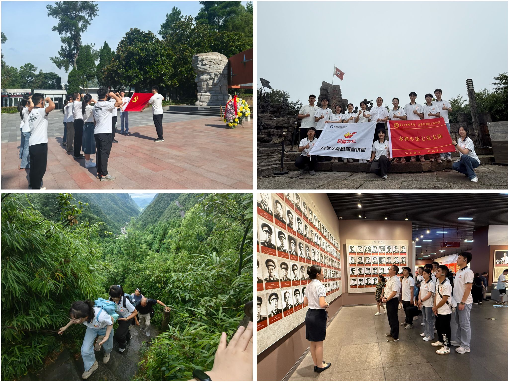在凤凰山,师生向烈士纪念碑敬献鲜花,聆听红军将领邓萍烈士和“红军菩萨”龙思泉的感人事迹,面向庄严的党旗,重温入党誓词。在遵义会议陈列馆,通过史料、实物与场景,系统回顾“伟大转折”这一波澜壮阔的历史。在娄山关,冒雨重走西风台、长空桥、大小尖山战斗遗址,攀登“百步梯”、体验红军埋锅造饭,直观感受红军战士不畏强敌、英勇奋战的精神风貌。
