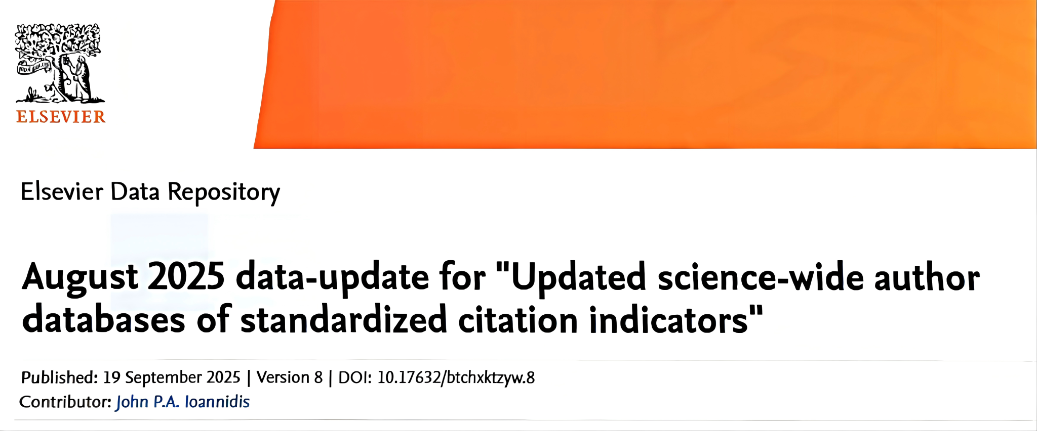 官方发布榜单链接:https://elsevier.digitalcommonsdata.com/datasets/btchxktzyw/8
