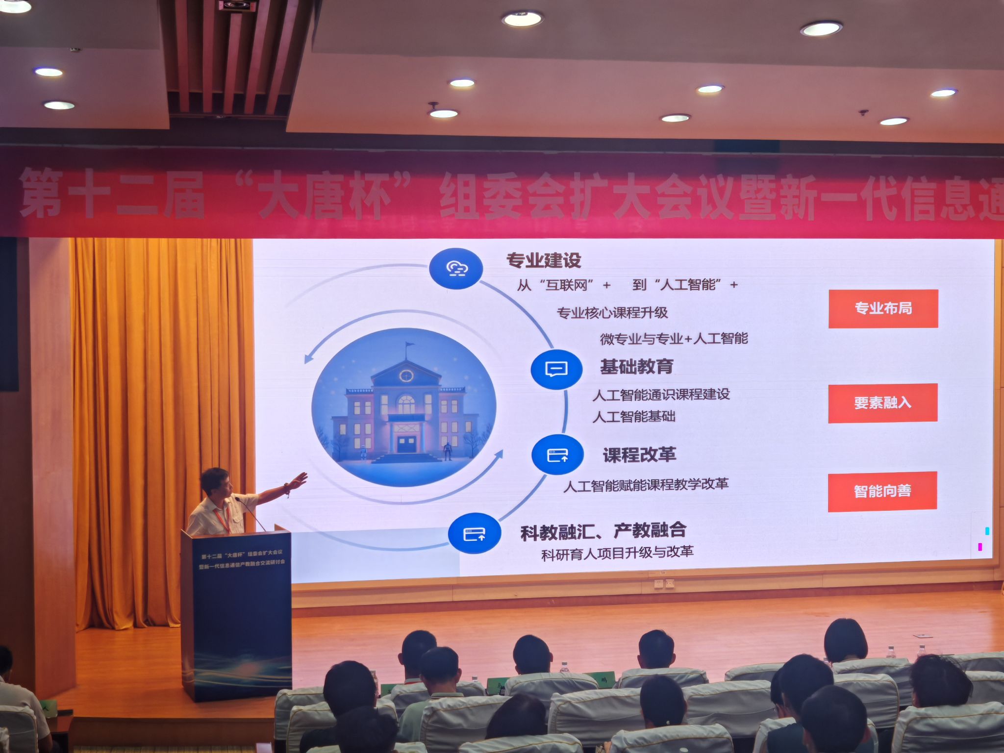 7月13日,段景山老师在武汉“新一代信息通信产教融合交流研讨会”上,以“AI 专业教育+产教融汇双赋能,培育新时代电子信息类数智人才”为题,向全国高校及企业代表介绍公司 AI 融入教学各环节的实践经验;8月22日,其又在郑州“数智赋能 协创未来,全国高校电子信息类教学改革论坛”作专题报告,进一步推广公司电子信息类专业与课程建设成果。