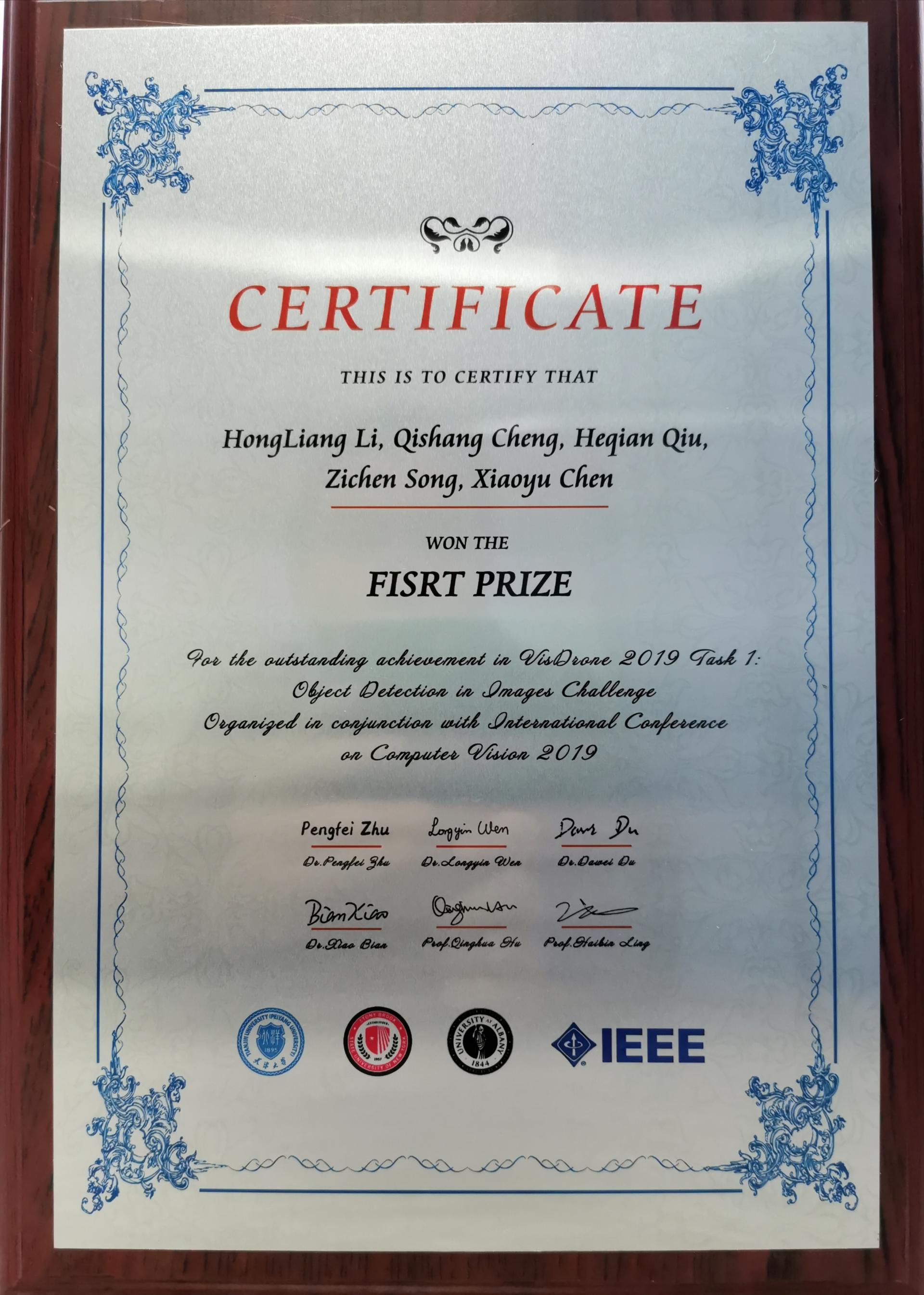 本次VisDrone挑战赛公司的获奖队伍来自太阳成集团tyc151cc的智能视觉信息处理与通信团队,在团队负责人李宏亮教授的带领下,先后取得了一系列处于领先地位的学术成果,已经申请多项国际国内发明专利或发表在国内外重要刊物和国际会议上。近年来,团队积极鼓励员工参加国内外相关竞赛,倡导理论联系实际、求真务实的学风,培养员工的综合知识运用能力,取得了一系列优异的成绩,包括基金委主办的第三届遥感图像稀疏表征与智能分析竞赛一等奖等等。