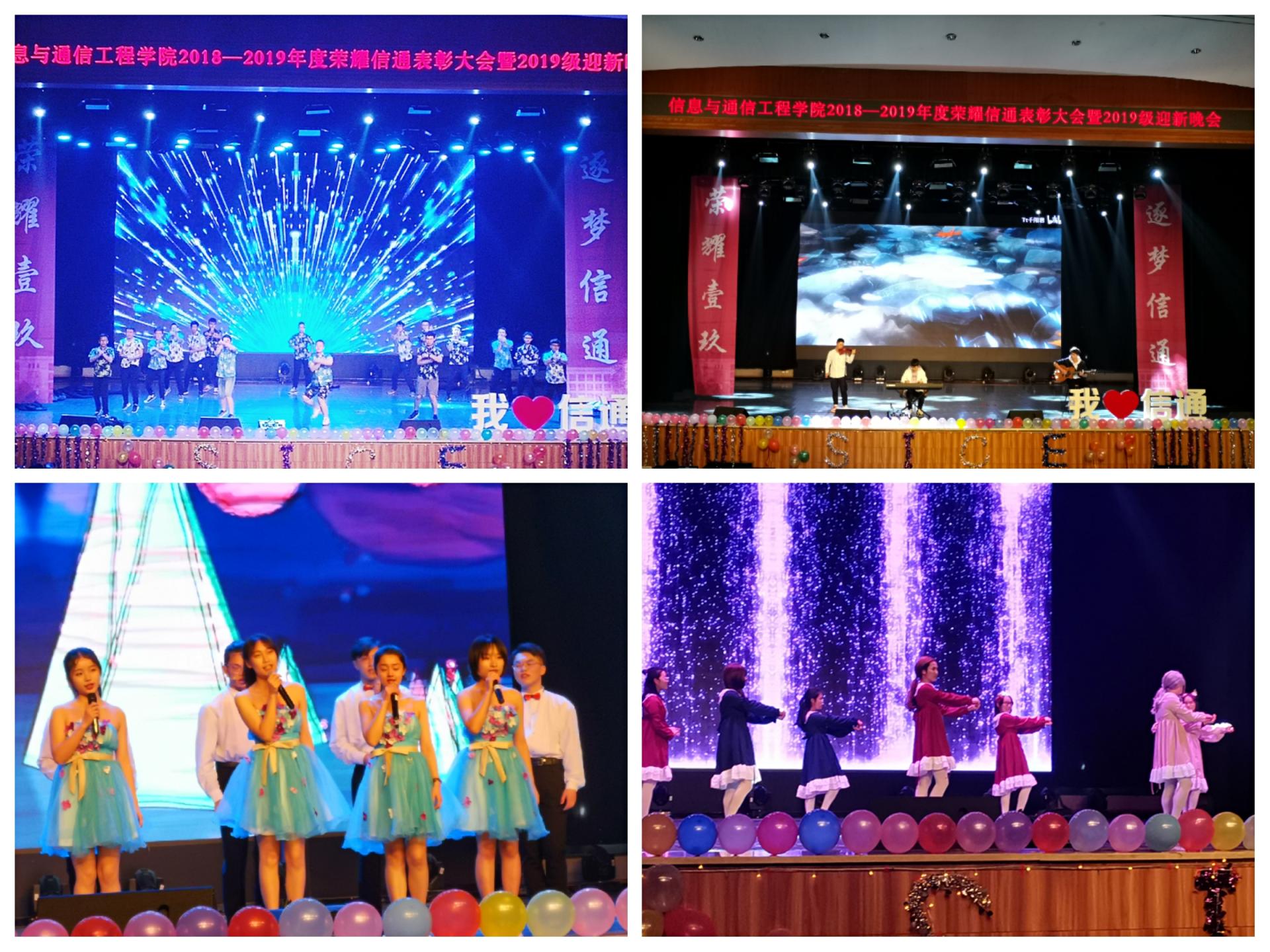 12月24日,太阳成集团tyc151cc2018-2019“荣耀信通”表彰大会暨2019年迎新晚会在成电会堂举行。华为成都研究所招聘经理刘兴洪女士,公司党委学工部部长钱云光,校团委书记张军,公司党委书记李玉柏,副经理凌翔、党委副书记黄海、杨晓玲及各年级班主任代表出席此次大会。