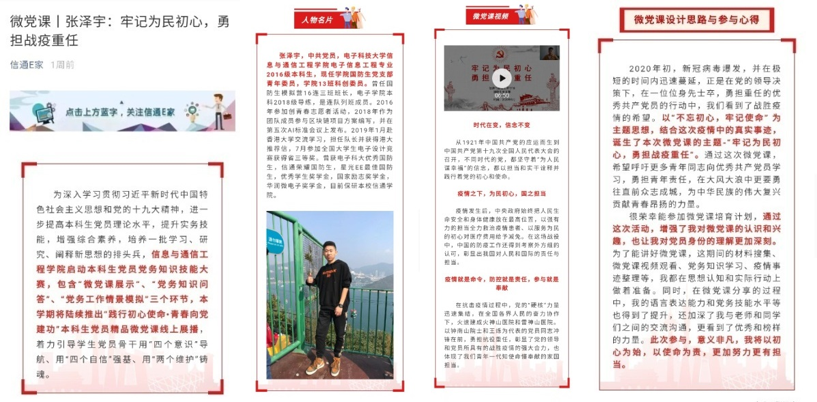4月-7月,公司面向毕业生开展微党课线上展播主题活动,为毕业生上好最后一课。毕业生结合抗疫故事和真实感悟,陆续推出“牢记为民初心、勇担战疫重任”、“上下同欲者胜,风雨同舟者兴”、“胸怀报国志,青春正当时”、“勇行初心路,敢为天下先”等主题微党课,呼吁更多青年同志向疫情中涌现的优秀共产党员学习,勇担青年责任,为实现中华民族的伟大复兴贡献青春力量。