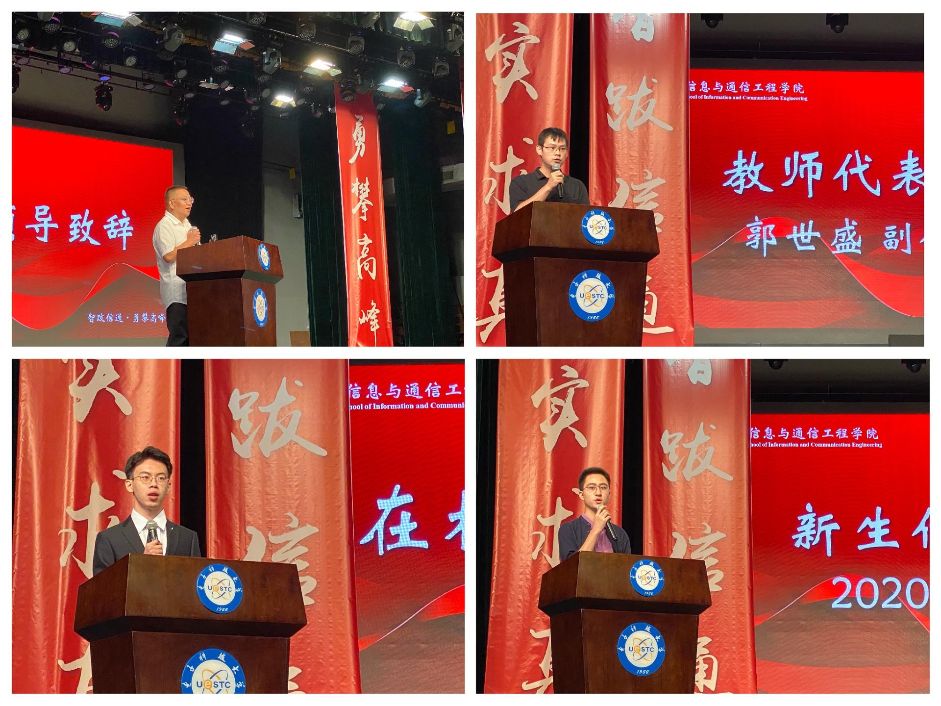 在校生代表2017级田凯元和新生代表张皓翔分别上台发言。田凯元结合三年老员工活,将亲身经历与导师的建议凝练成六字箴言:率性、顺势、奋进,与同学们展开分享。张皓翔期待与大家一起铭记初心,把握当下,在成电求实求真,大气大为,将小我,与国家发展、民族复兴的大我相结合,去为中国梦、强国梦的实现添砖加瓦。