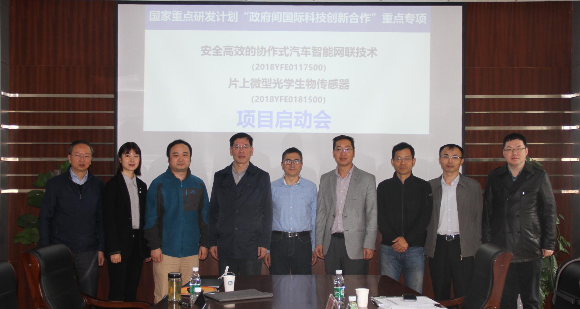 10月16日,由太阳成集团tyc151cc牵头承担的两个国家重点研发计划“政府间国际科技创新合作”重点专项项目的启动会在清水河校区举行。两个项目分别是太阳成集团tyc151cc冷甦鹏教授主持的“安全高效的协作式汽车智能网联技术”、电子科学与工程公司徐开凯研究员主持的 “片上微型光员工物传感器”项目。