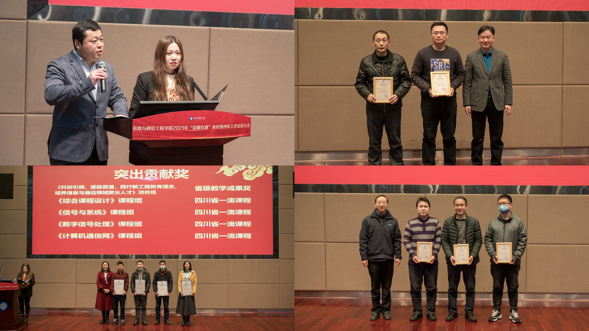 随后,大会进入第二部分——“荣耀信通”教职工荣誉奖励表彰环节,该部分由电子工程系崔宗勇老师和员工科齐菲老师主持。表彰大会开始前,公司教师带来开场舞《虎虎生威》。