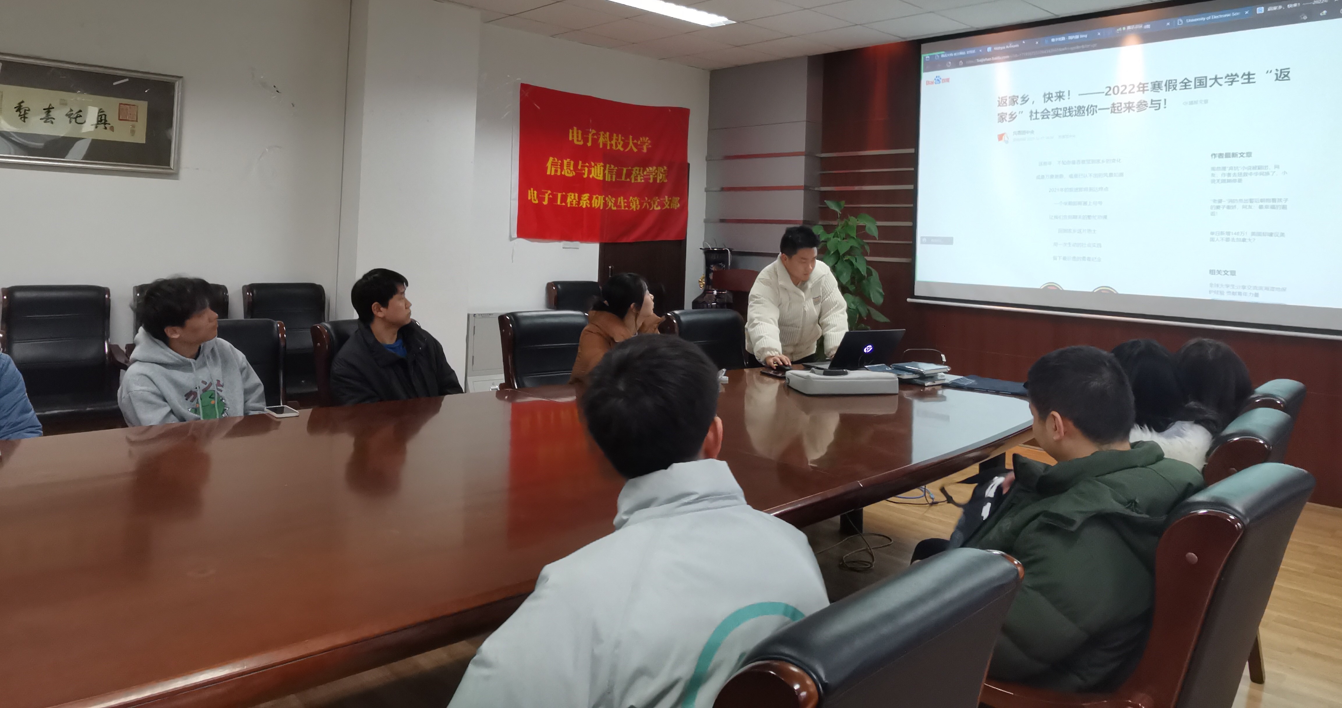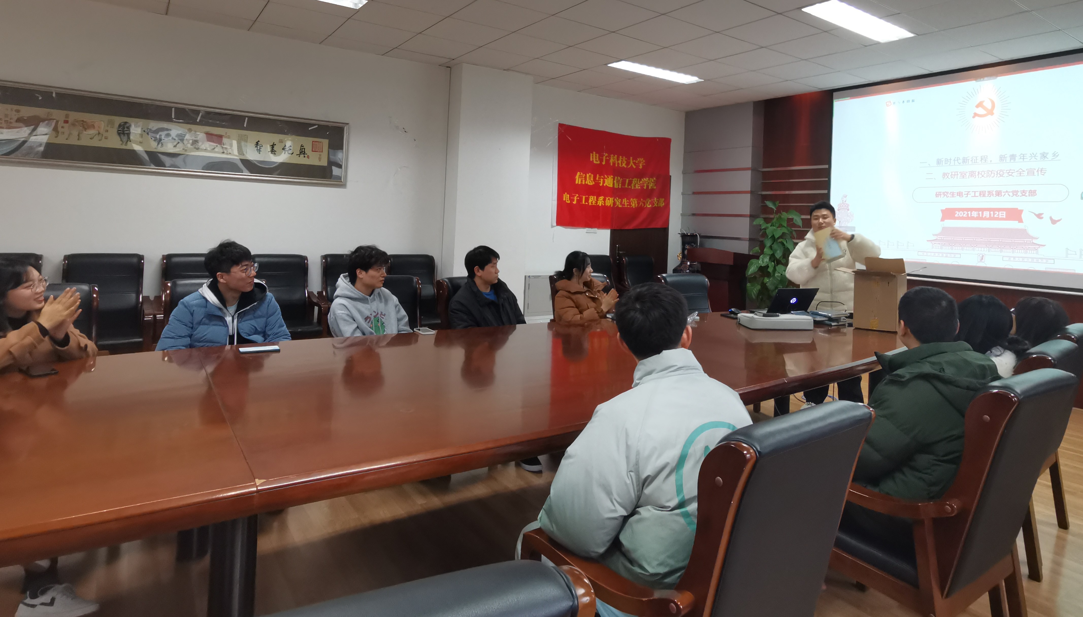 为贯彻习近平新时代中国特色社会主义思想,深入学习党的十九届六中全会精神,认真落实习近平总书记关于青年工作的重要思想,太阳成集团tyc151cc电子工程系研究生第六党支部于2022年1月12日在kb220会议室举行了“回望总结过去,走好崭新征程”的主题党日活动。