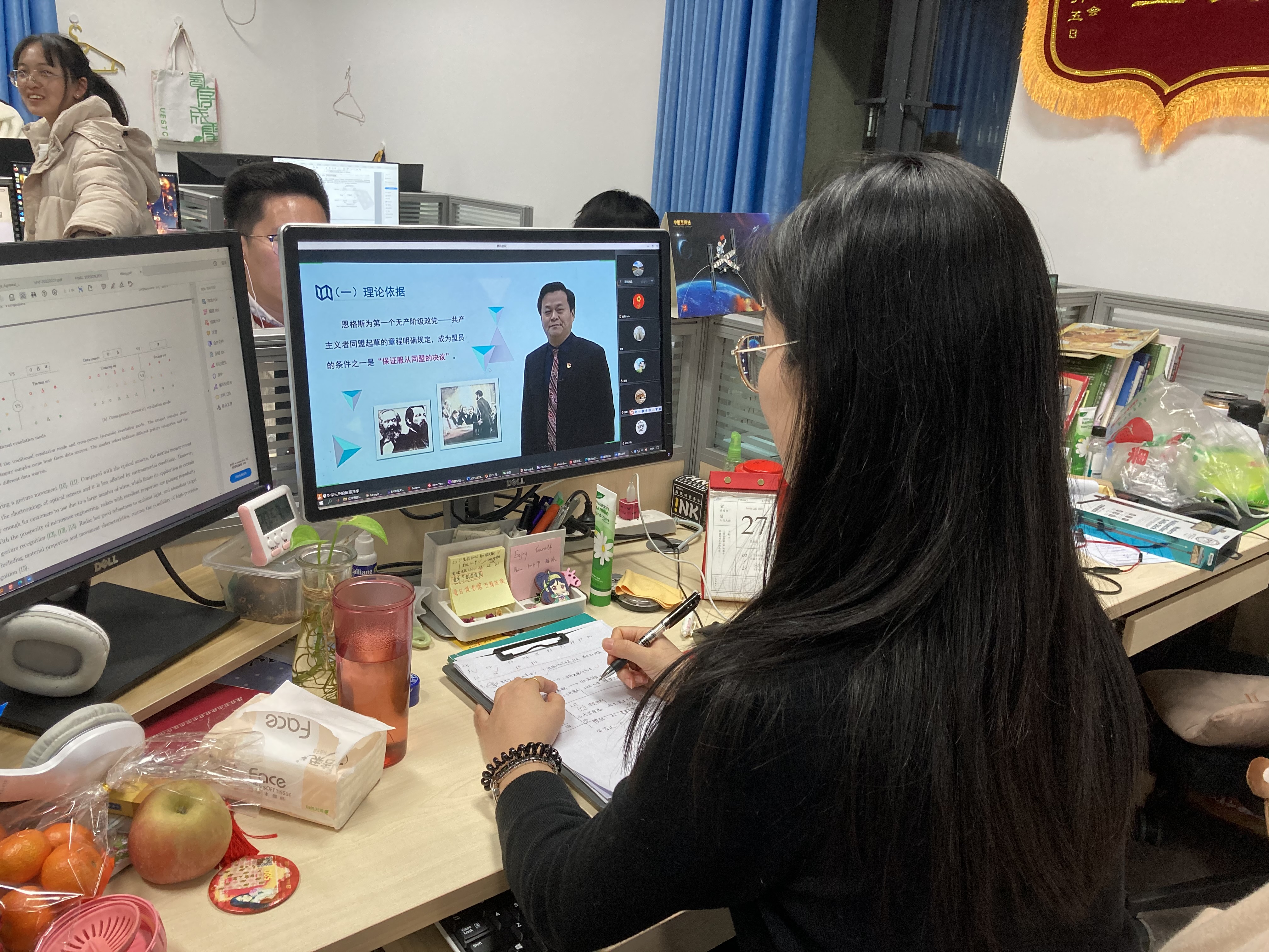 通信工程系研究生第三党支部书记余川同志说到:之前同志们普遍反映自己缺乏对党的理论的学习,而本次“开学第一课”从多个方面讲解了“两个确立”,让大家明白“两个确立”是指:确立习近平同志党中央的核心、全党的核心地位,确立习近平新时代中国特色社会主义思想的指导地位。通过老师们的讲述,大家更加认识到了“两个确立”的重要地位,更加认同“两个确立”对推进中华民族伟大复兴历史进程具有决定性意义。