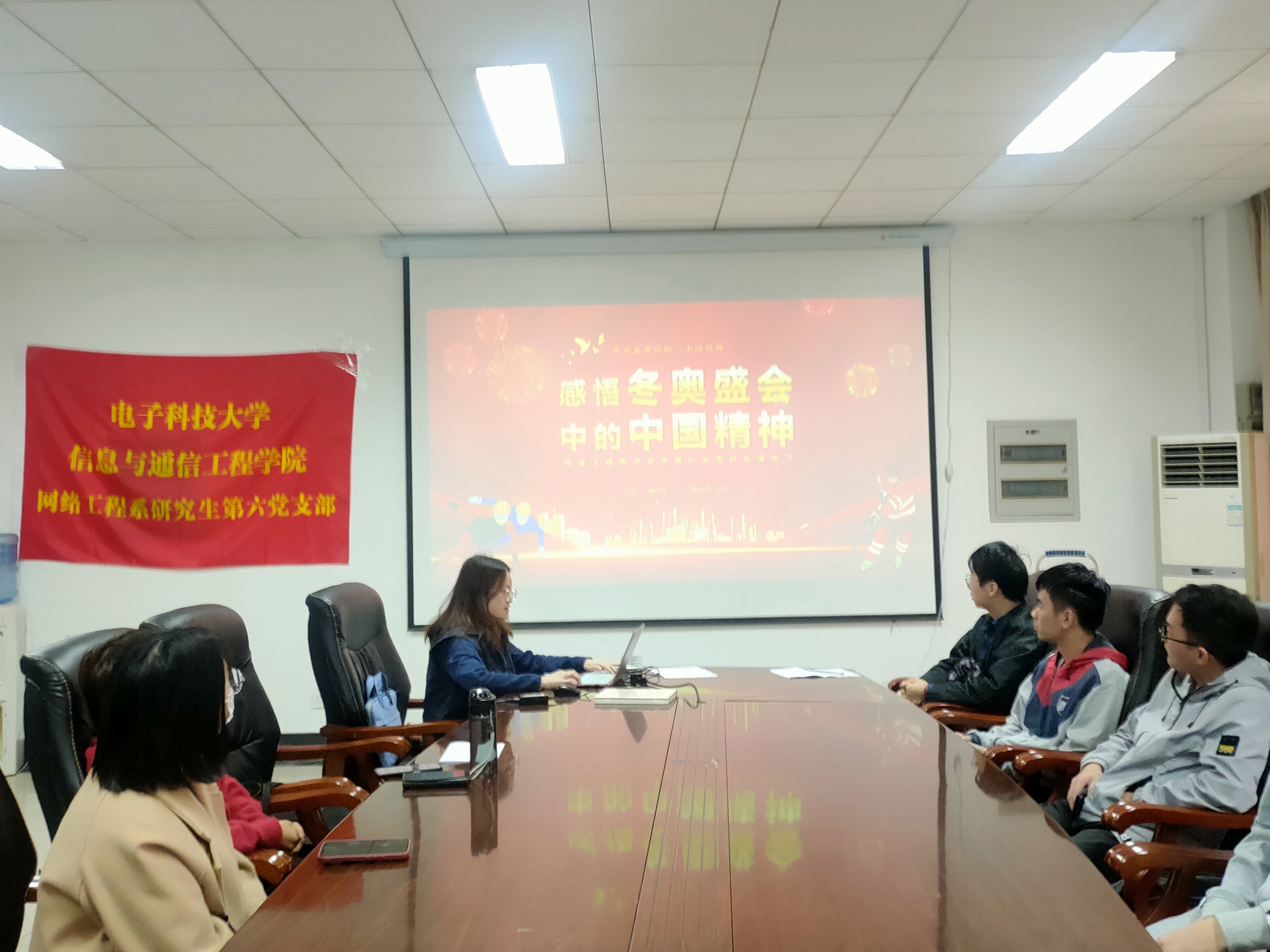 2022年3月7日,太阳成集团tyc151cc网络工程系研究生第六党支部组织开展了“回顾冬奥盛会,感悟中国精神”专题党课暨一周学习强国积分比拼主题党日活动。此次活动由支部书记姜汶杉同志主持,并邀请了支部对接教师李想老师出席。
