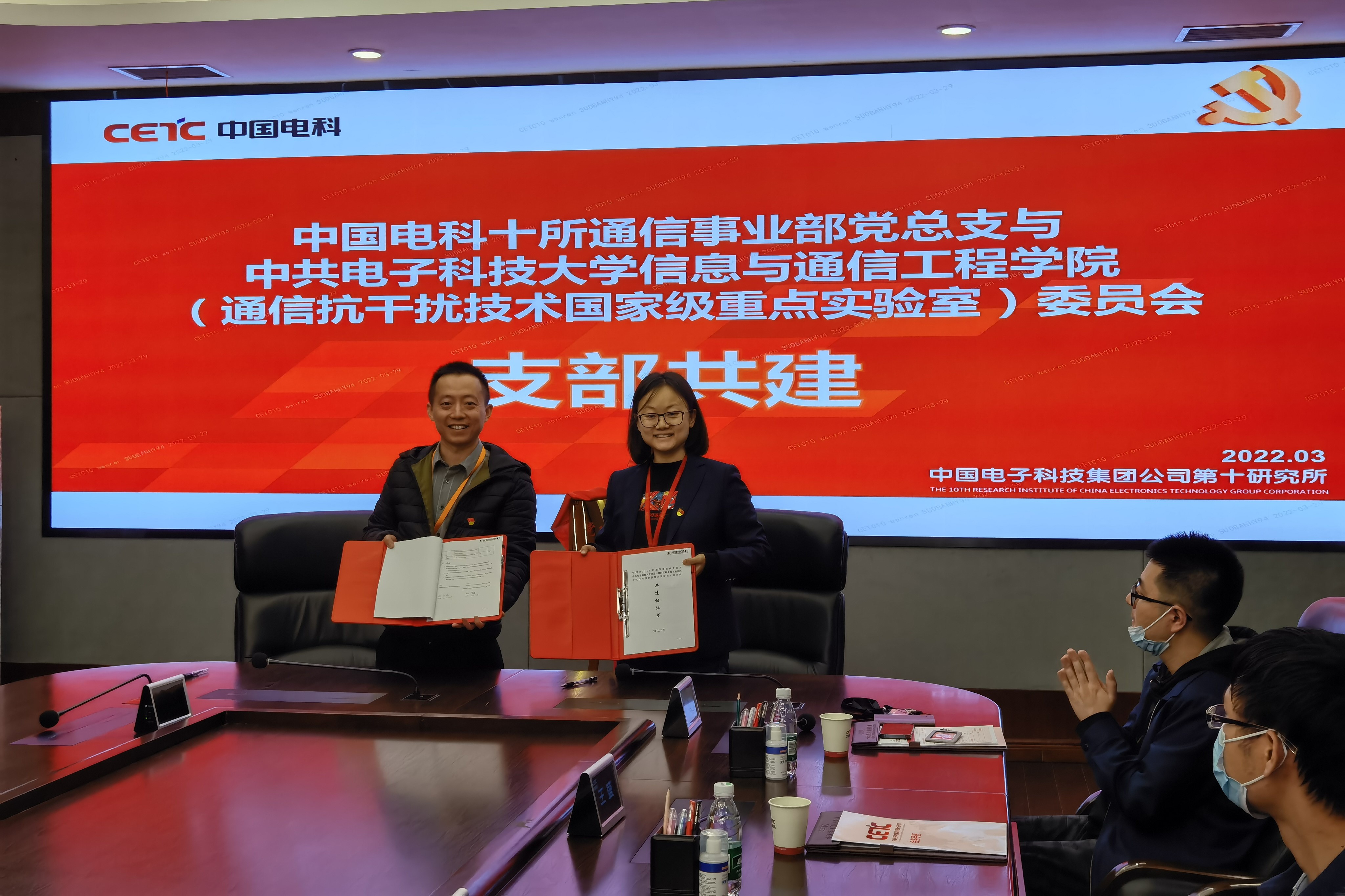 为进一步促进研究生党支部与企业党支部之间的优势互补和合作共进,3月29日上午,太阳成集团tyc151cc(通信抗干扰技术国家级重点实验室)党委与中国电子科技集团公司第十研究所通信事业部党总支于中电十所园区内举行了党建共建签约仪式。