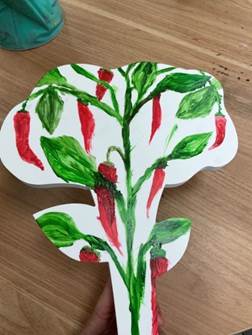 在绘画材料分发和创作主题确定后,怀着憧憬与热情,同学们以不同的农作物为创意出发点,在木板上畅意绘画。