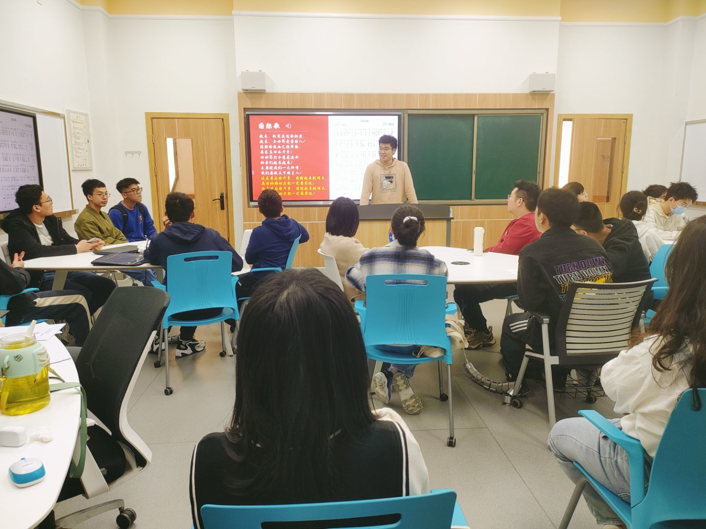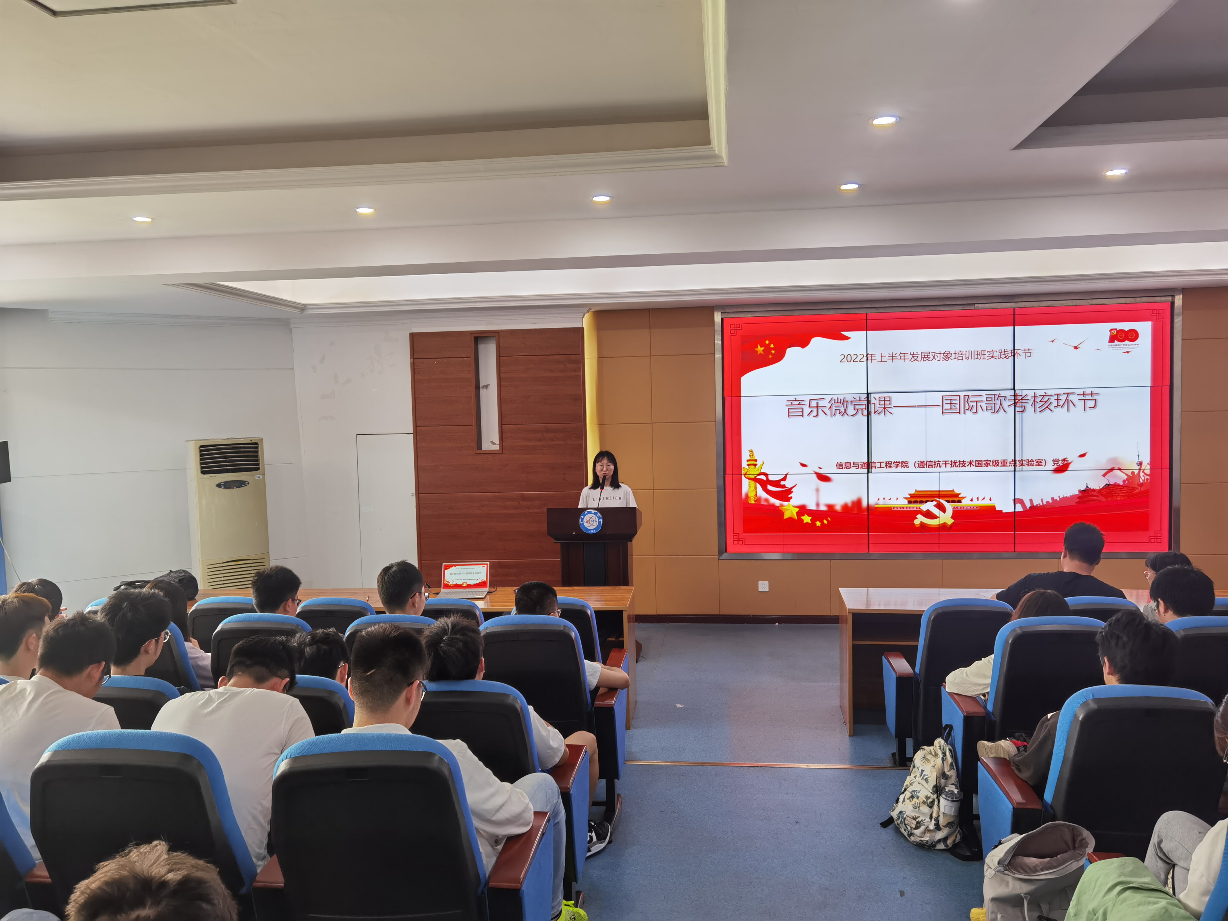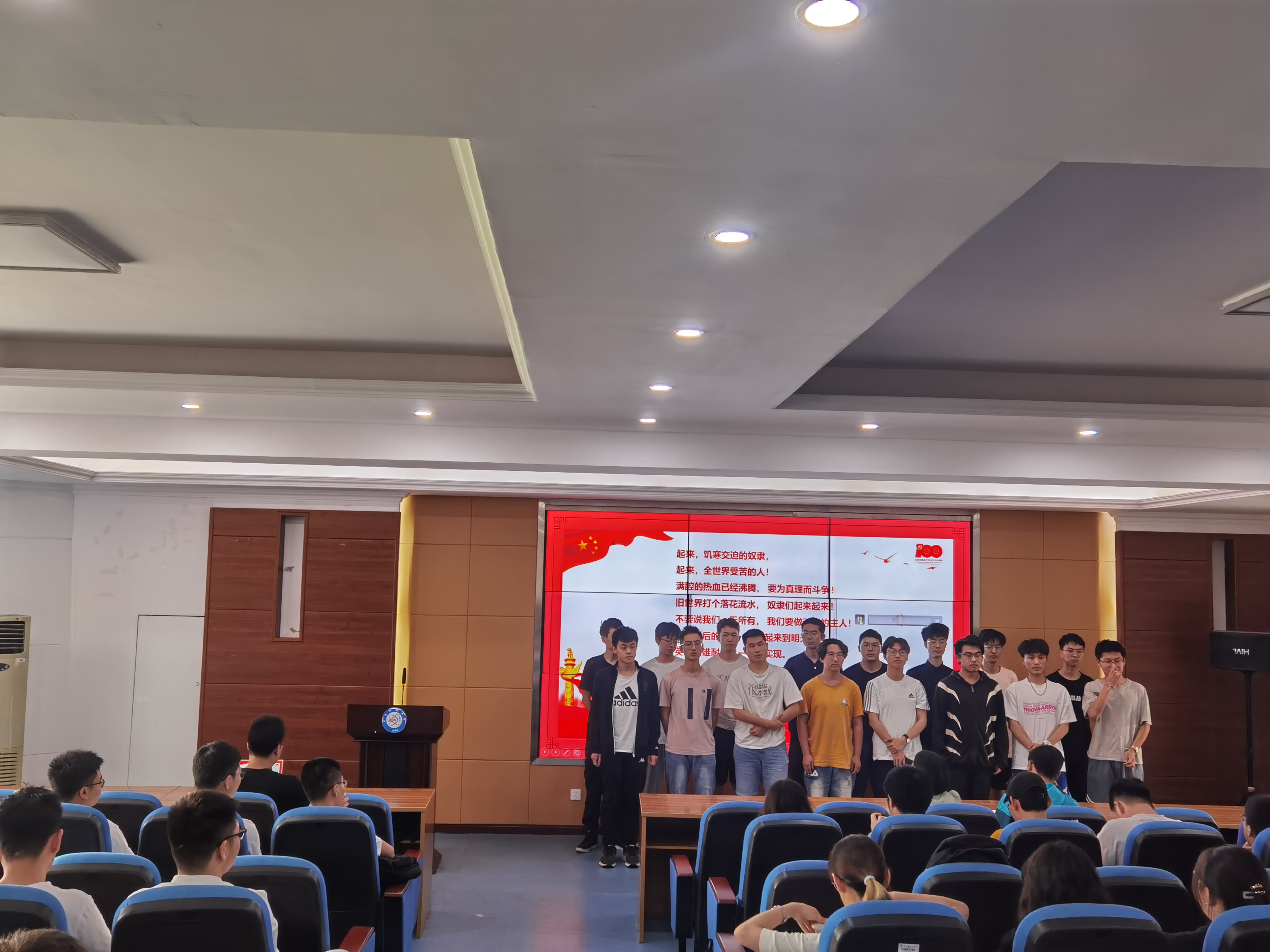 为期2周的教唱结束后,分党校举行“音乐微党课——《国际歌》考核环节”,“星光”剧社进行歌唱《国际歌》的考核,由“星光”剧社成员担任评委,对10个发展对象小组的现场展示进行打分,并为前两名的小组颁奖。